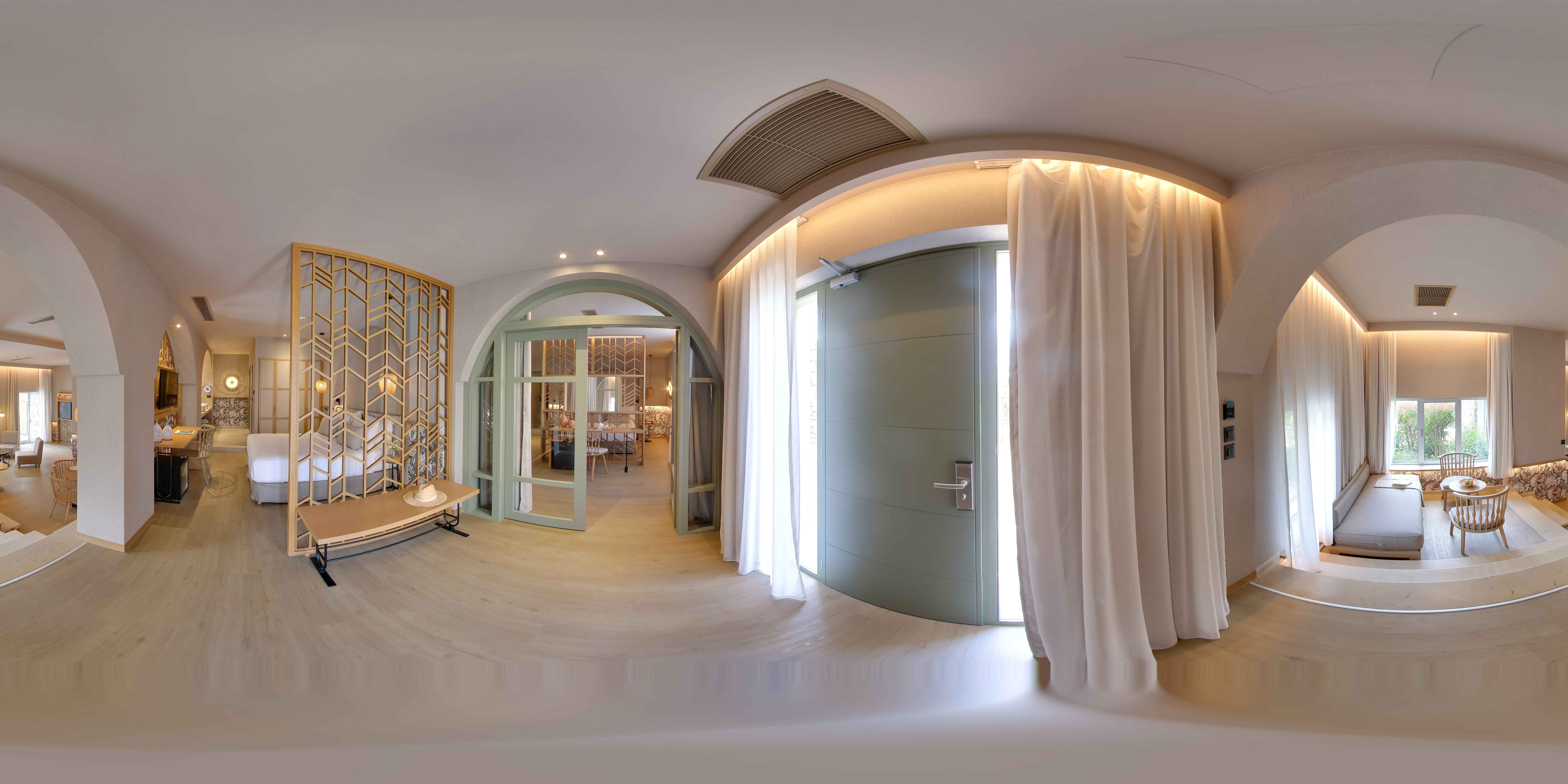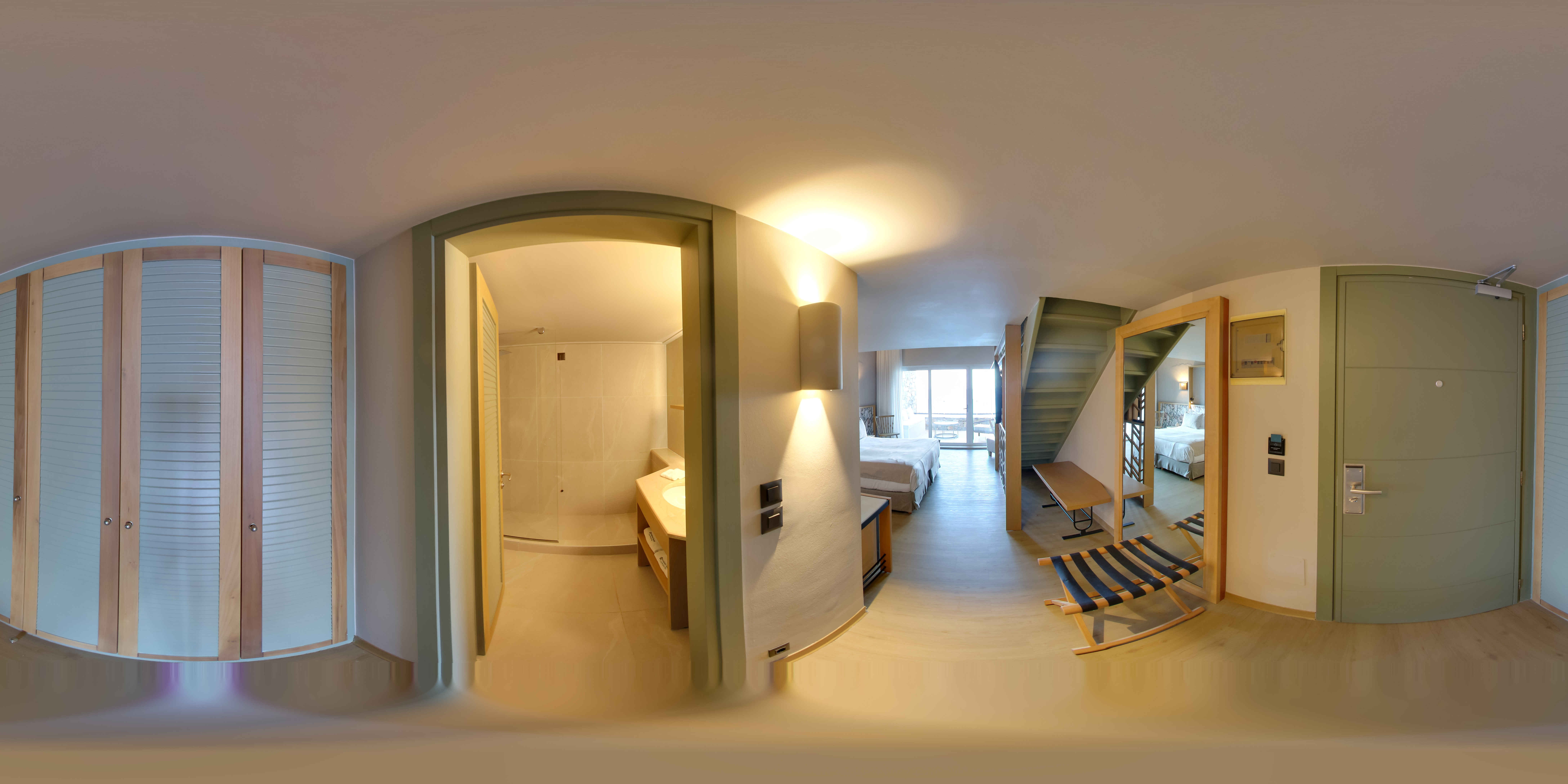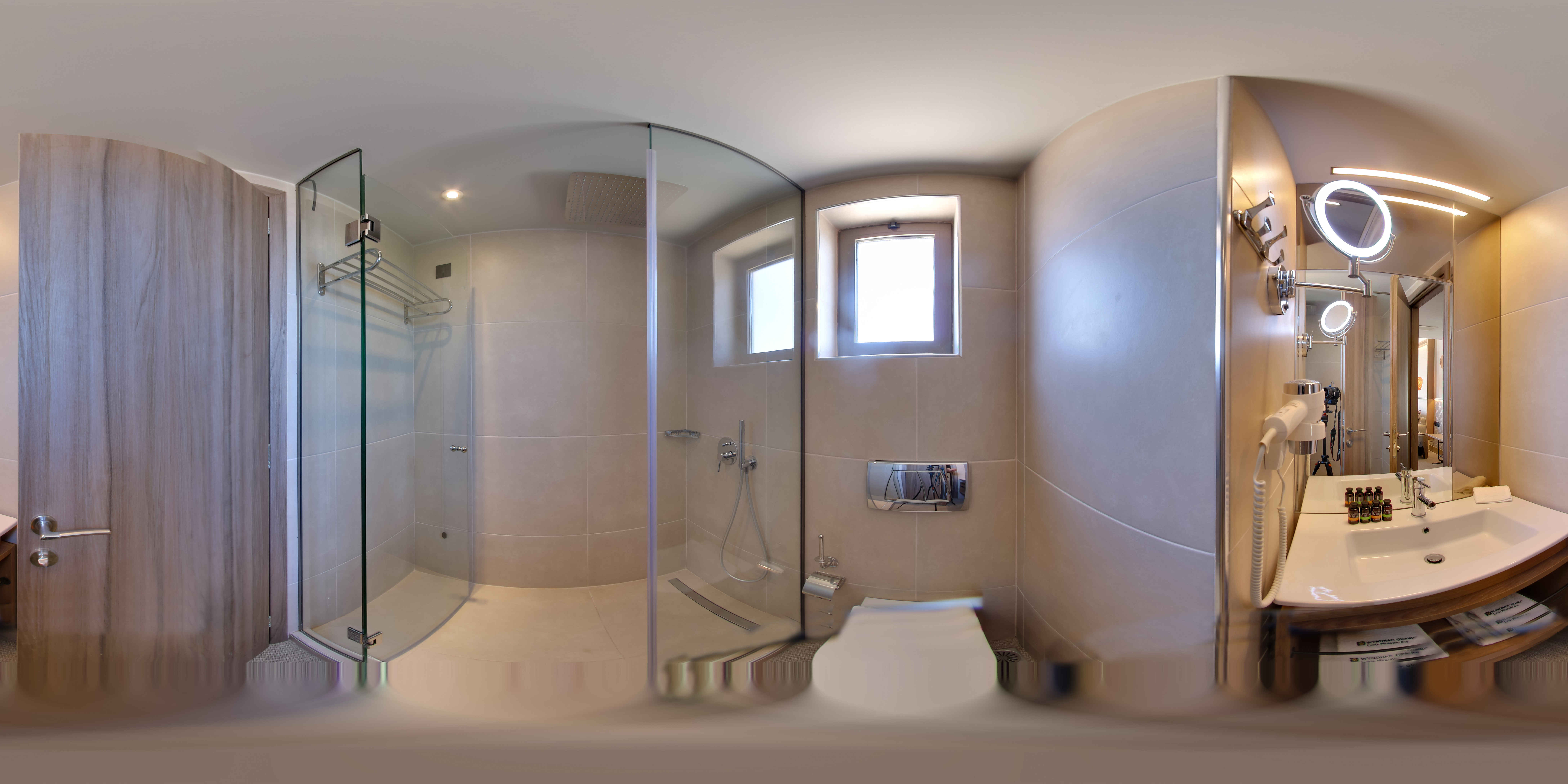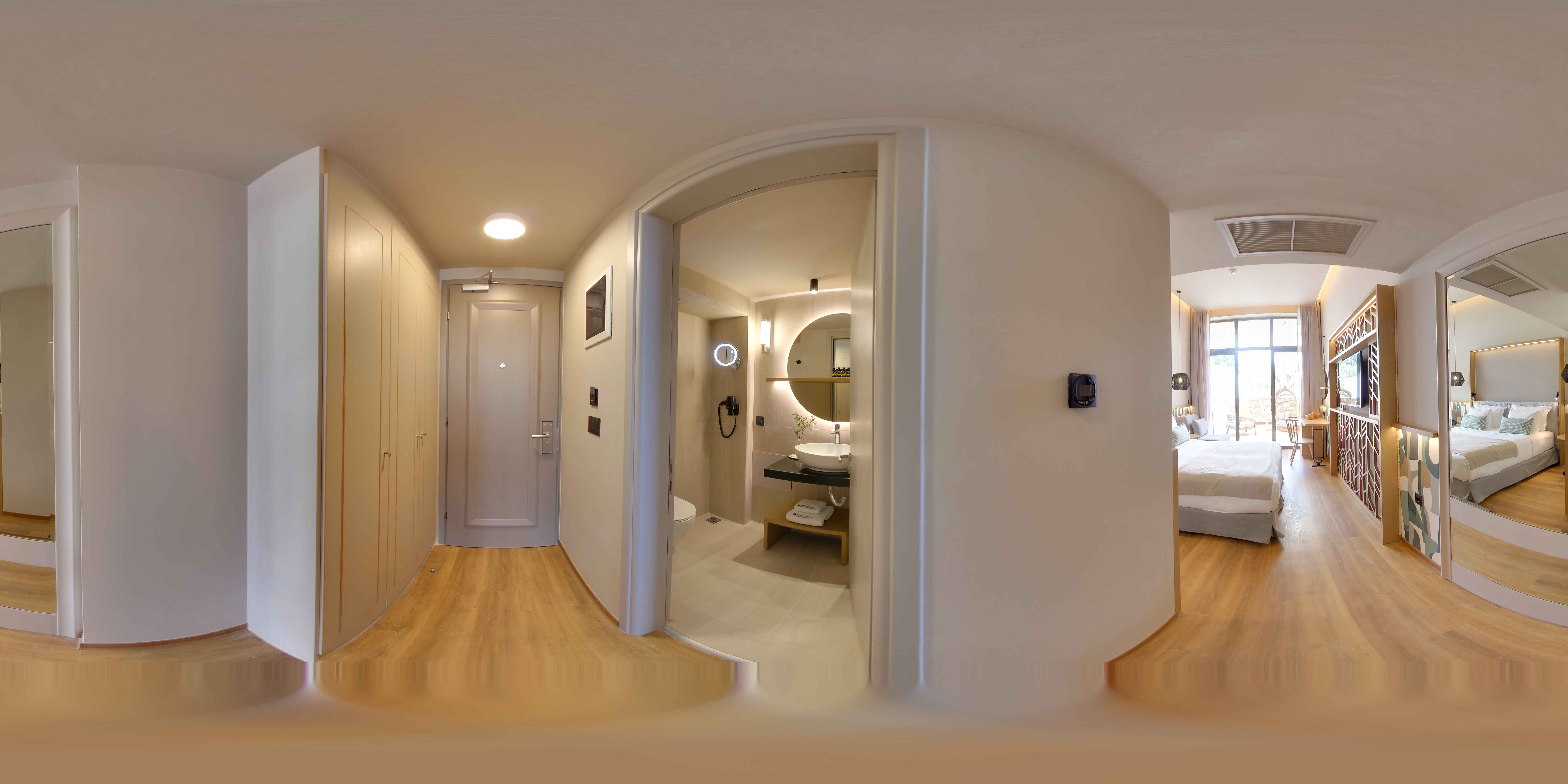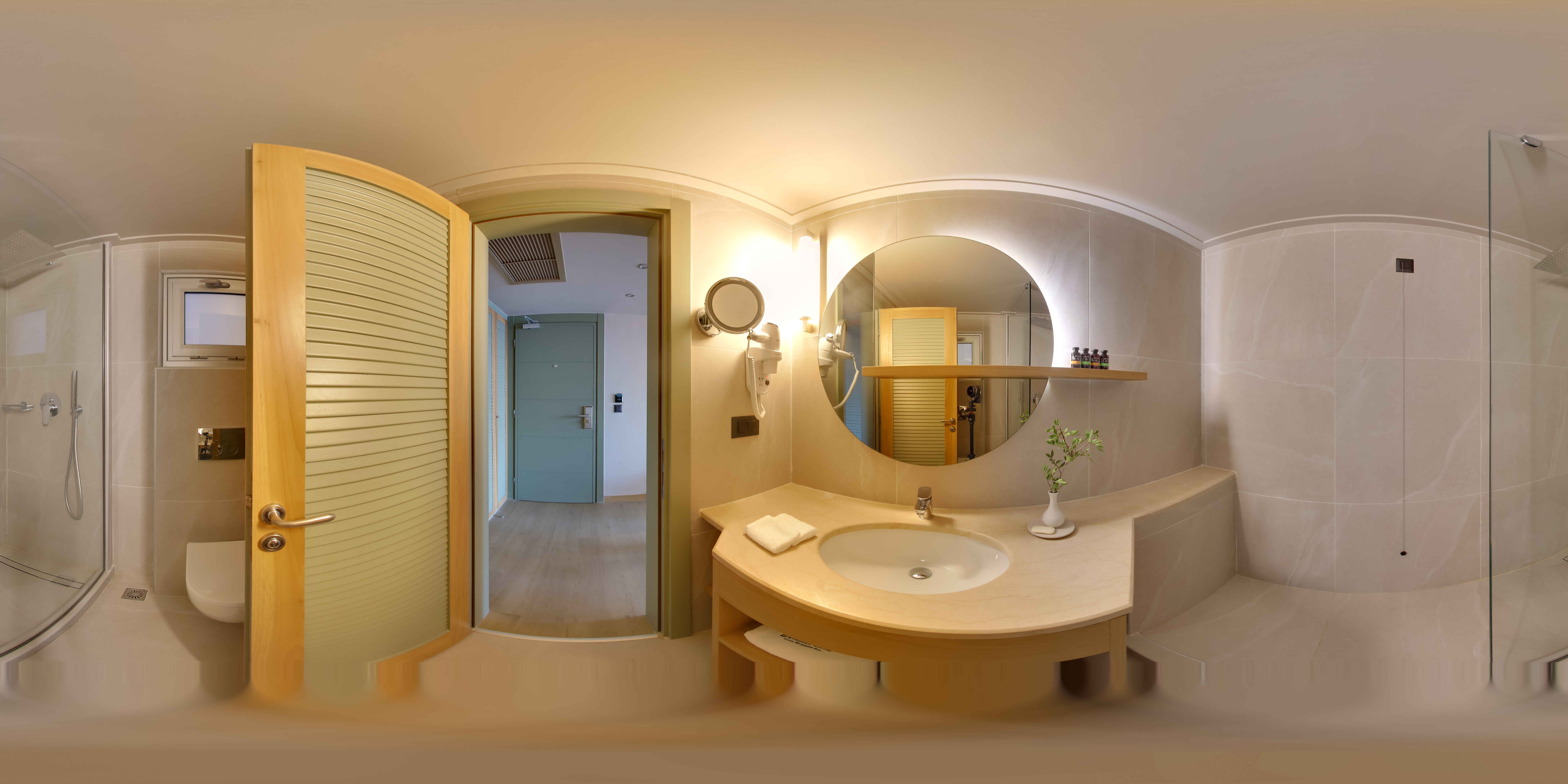This is the Main Building area. You can use the marker at the elevators to guide yourself to one of the rooms, visit the Amalthea Restaurant or communicate with the hotel’s staff at the Reception.