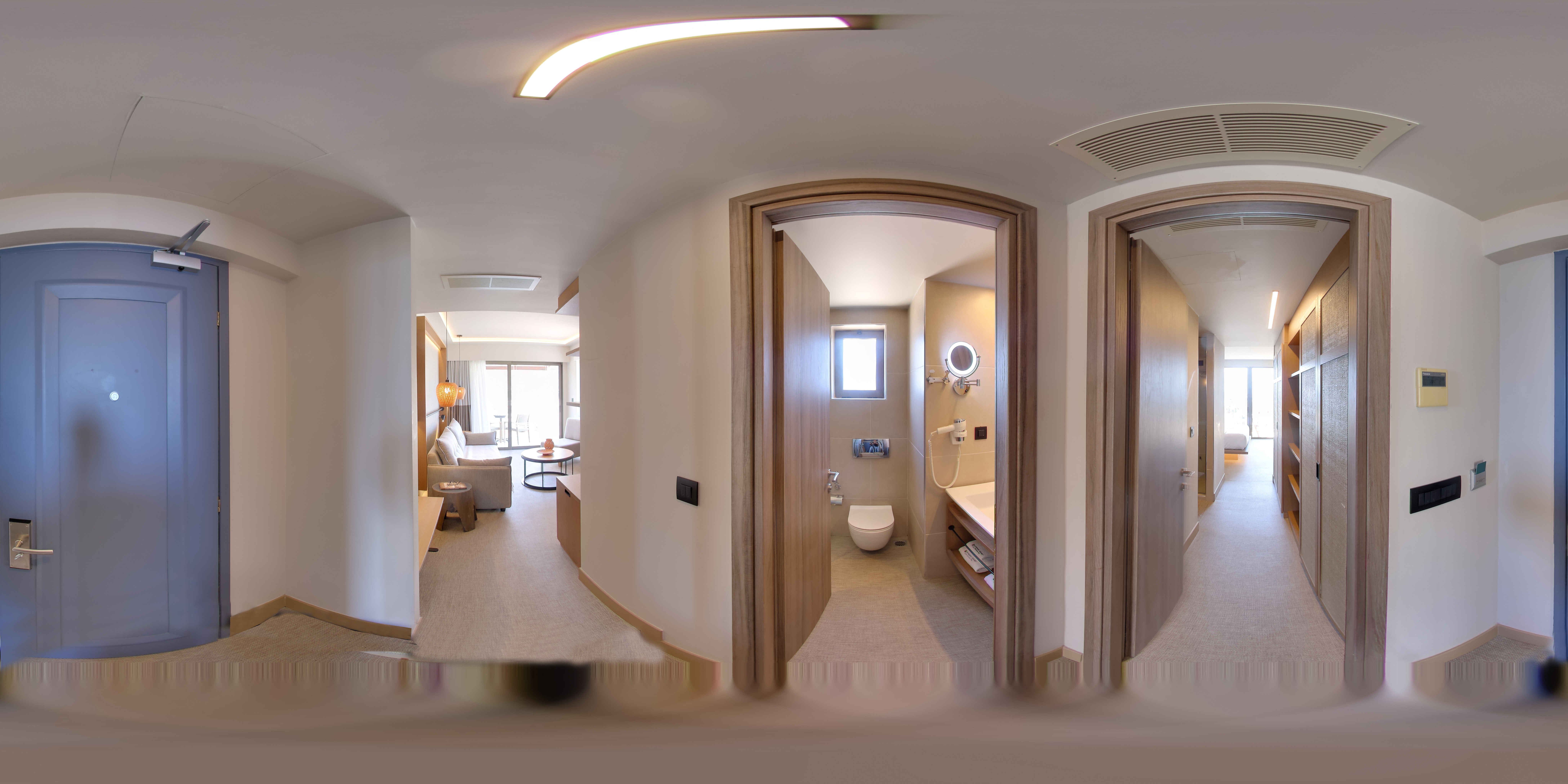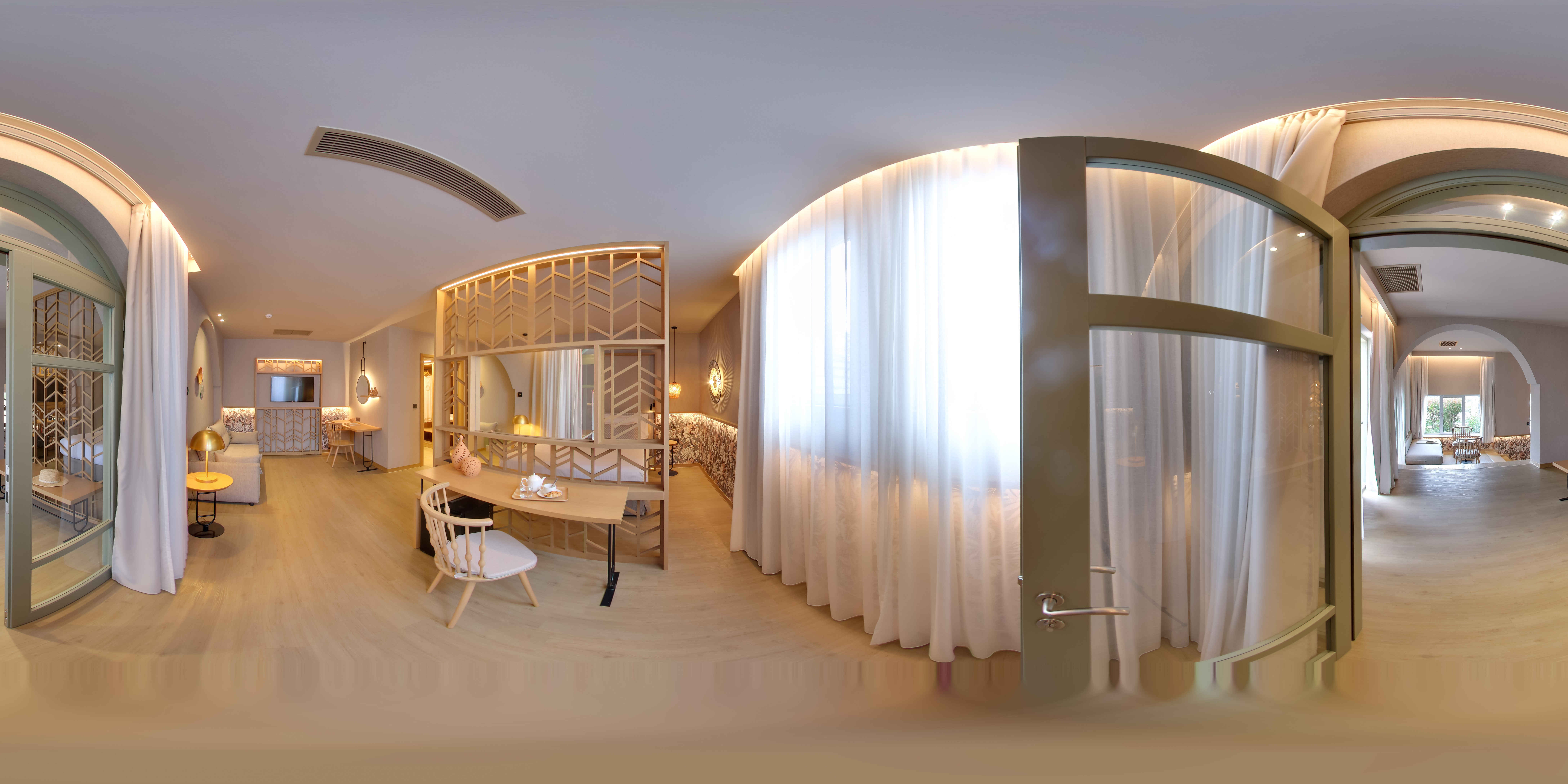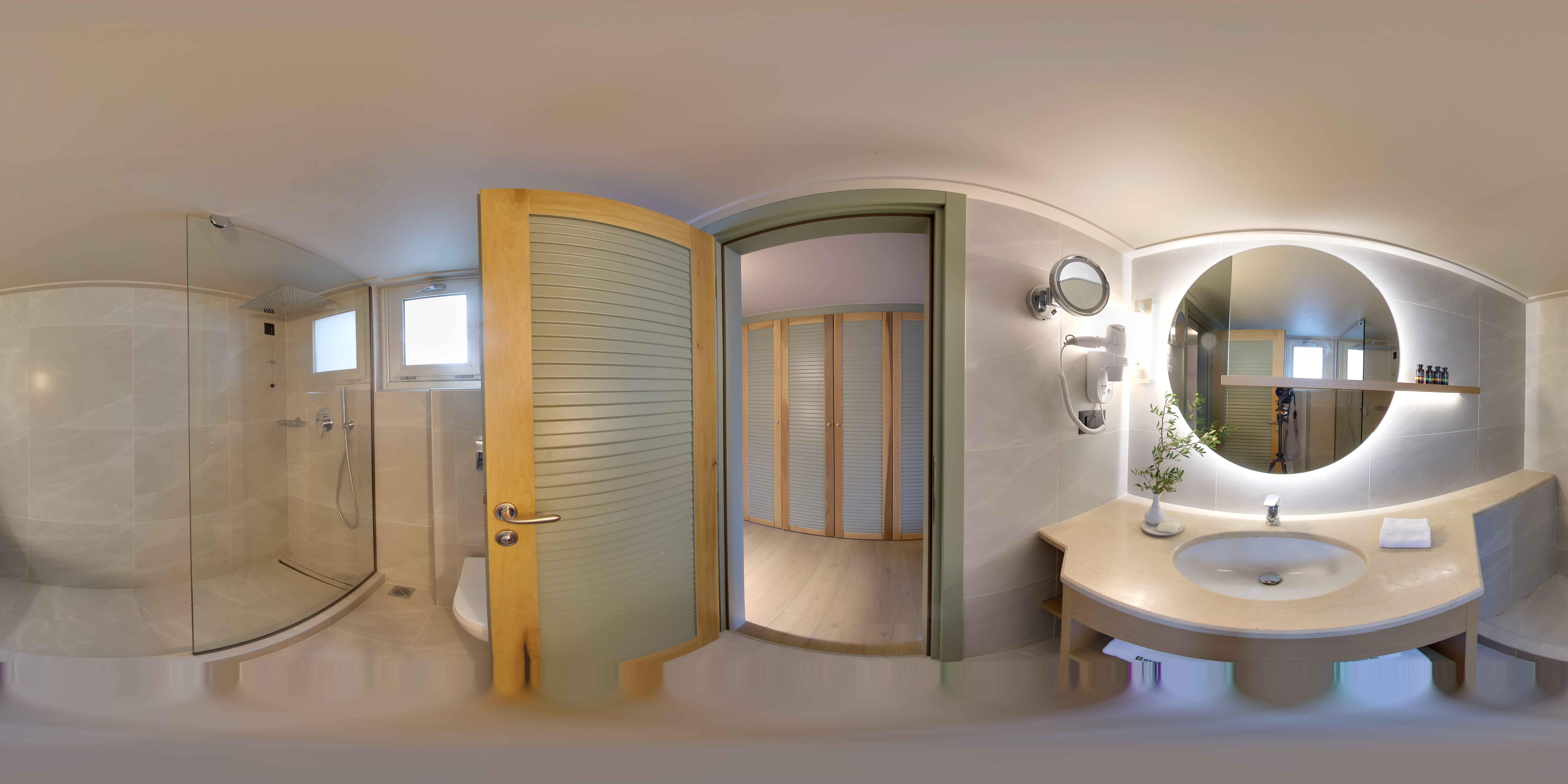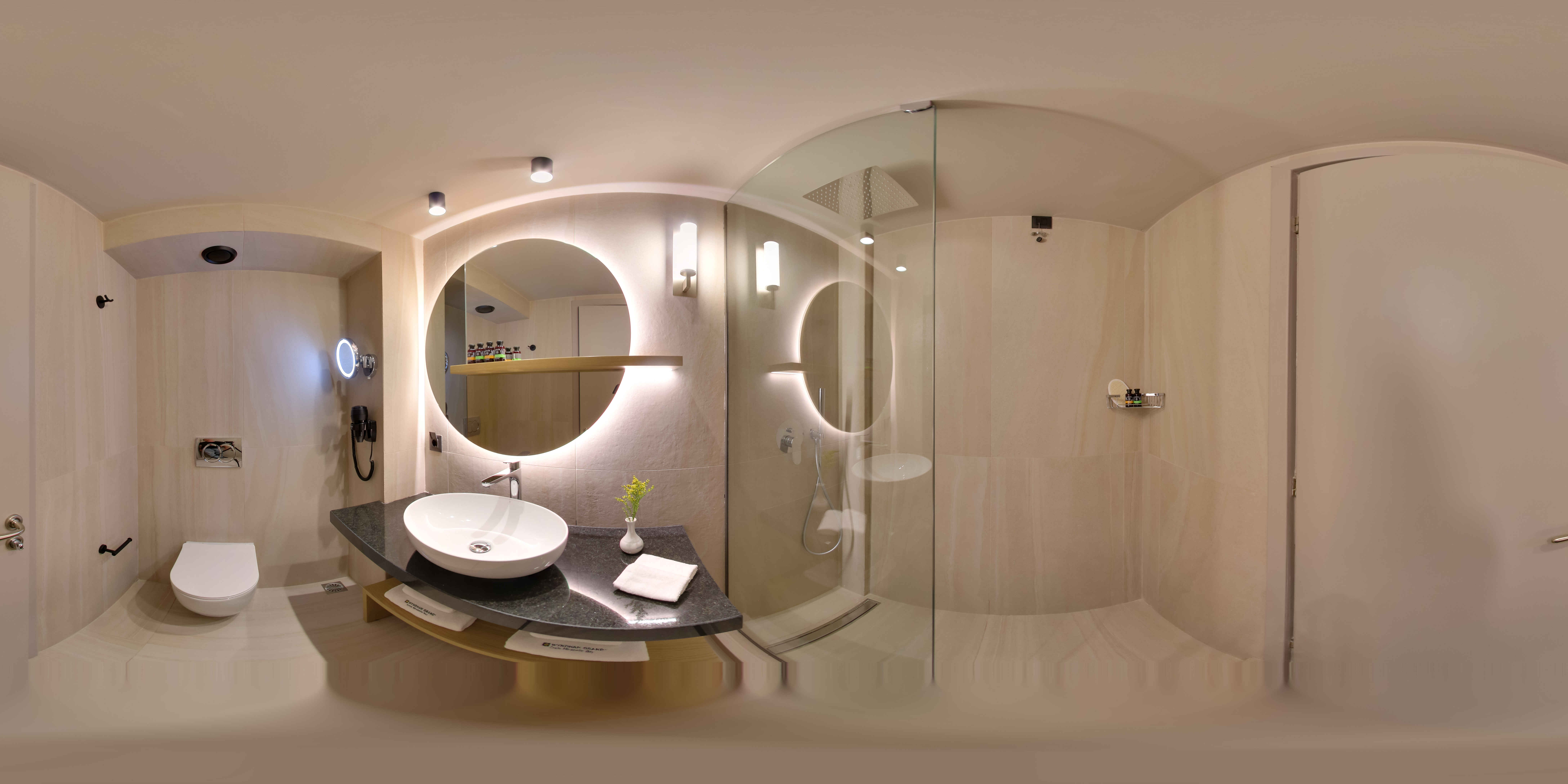 This is the Main Building area. You can use the marker at the elevators to guide yourself to one of the rooms, visit the Amalthea Restaurant or communicate with the hotel’s staff at the Reception.