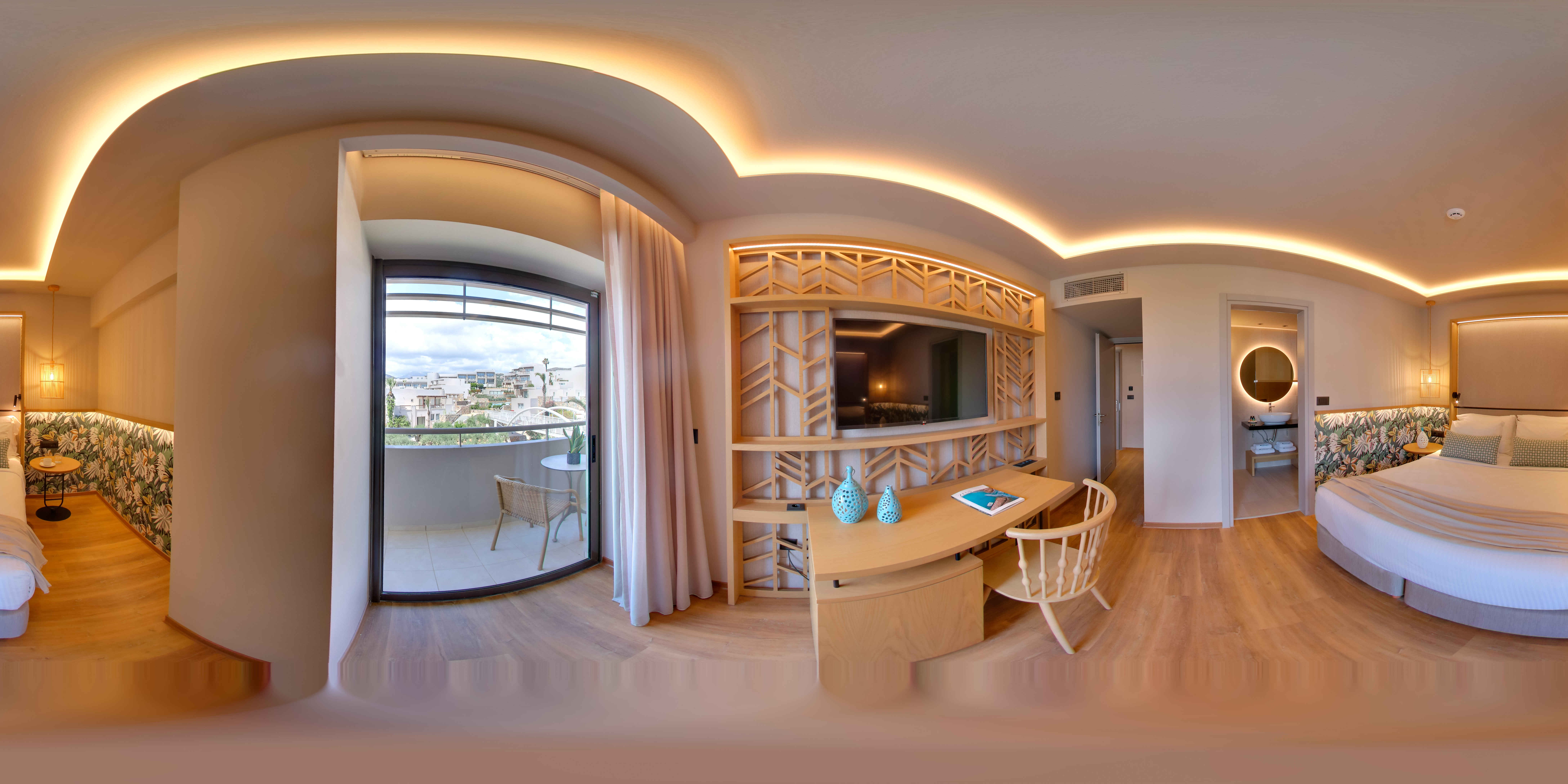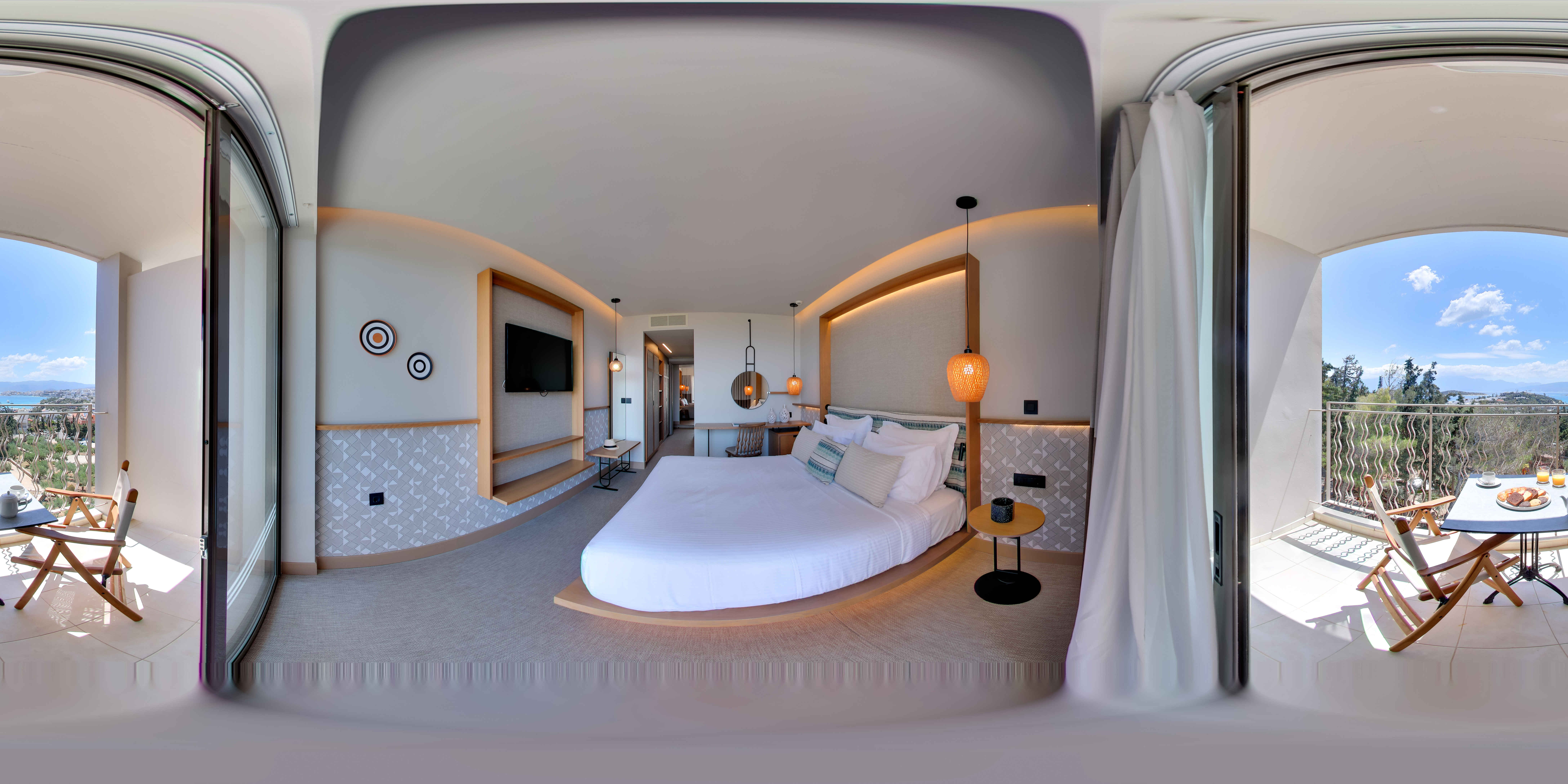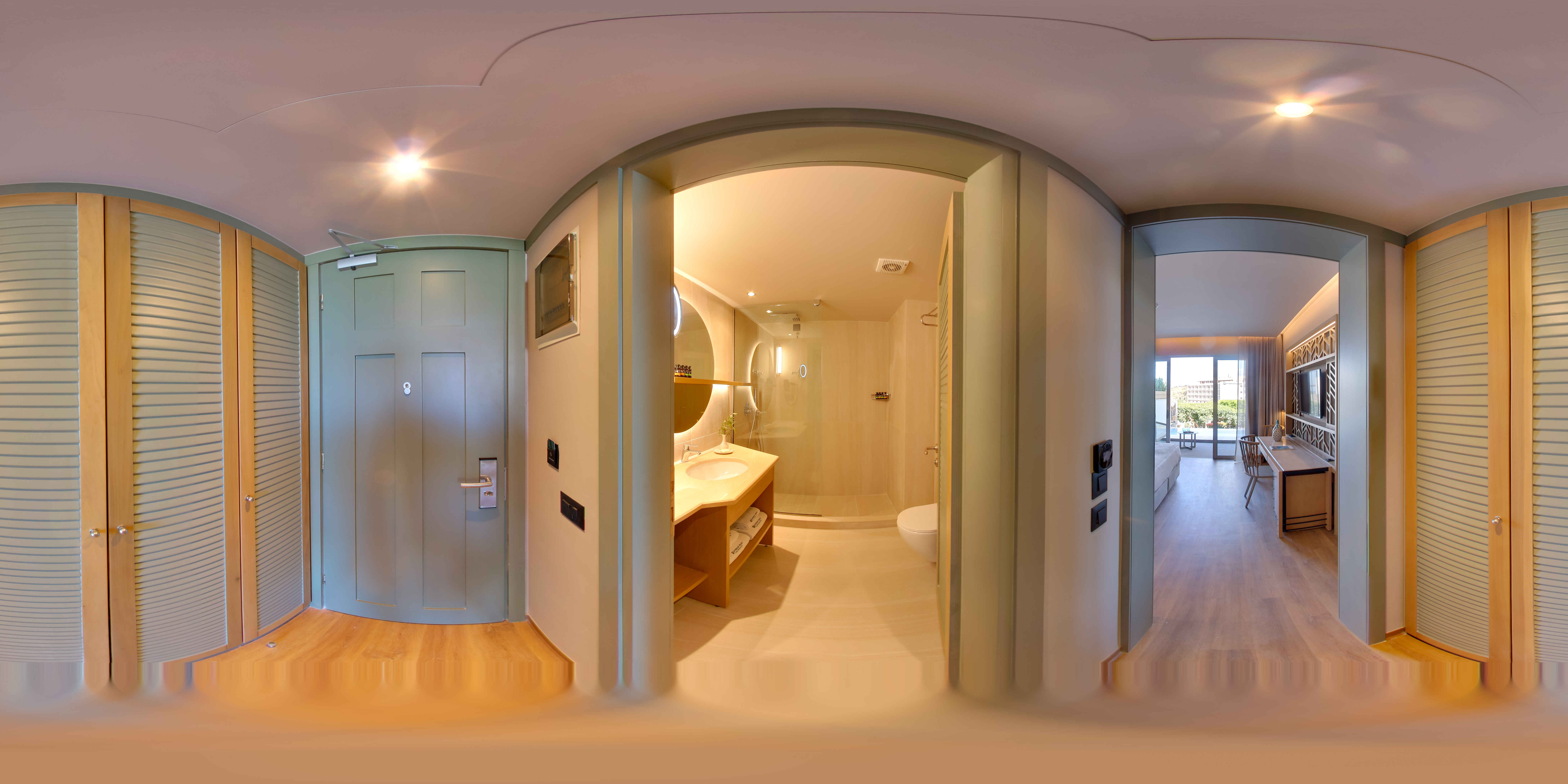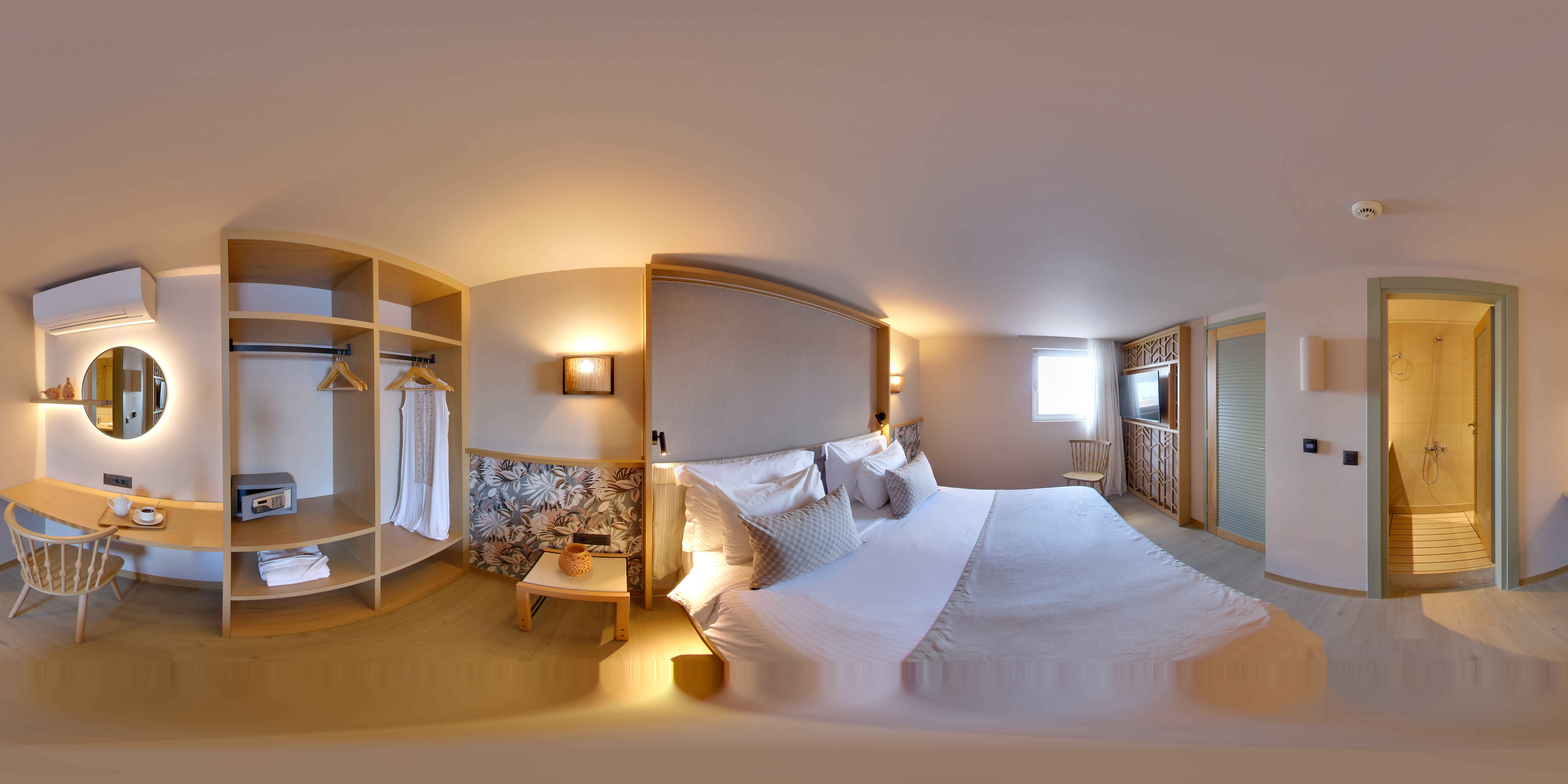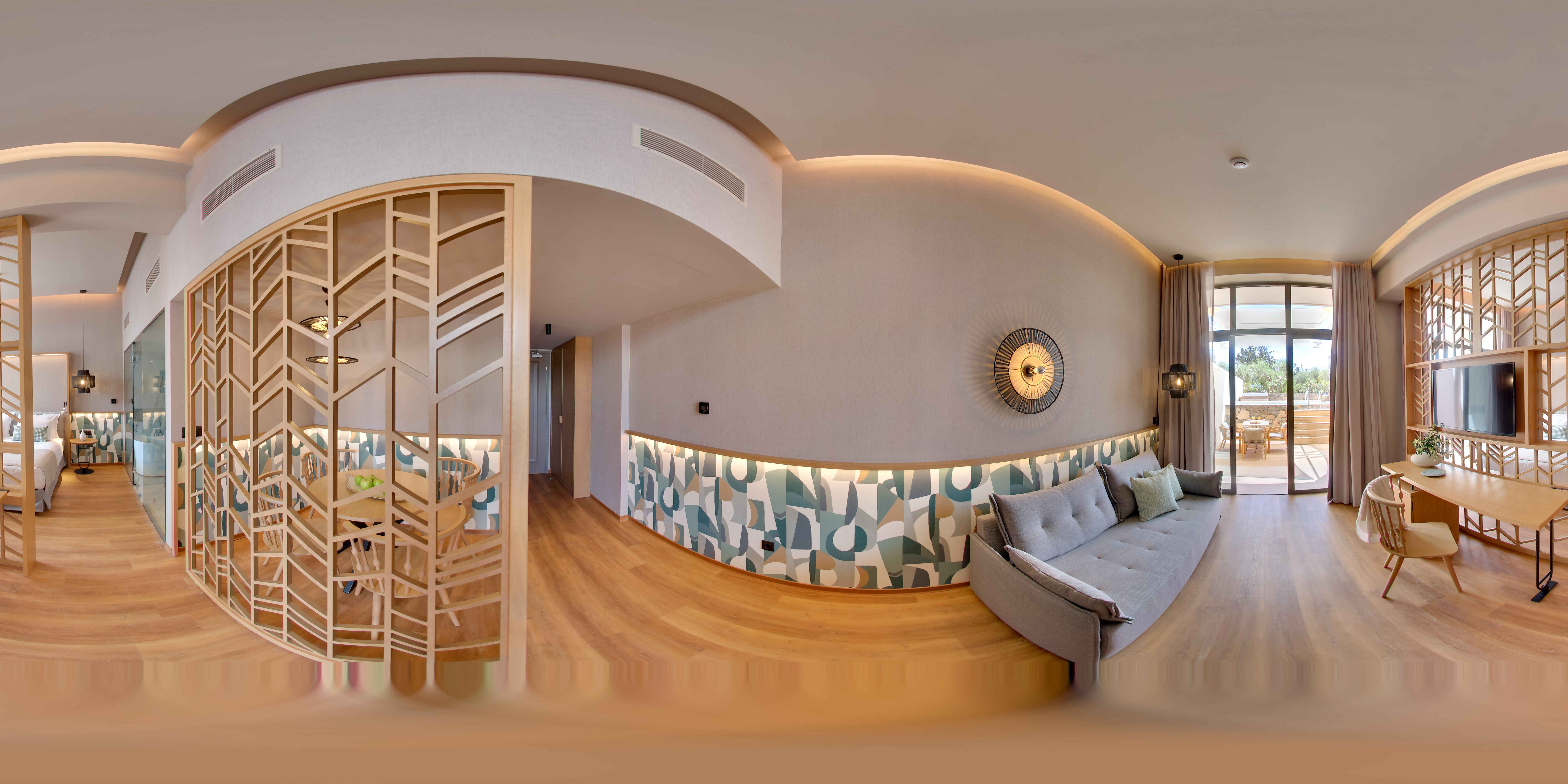 This is the Main Building area. You can use the marker at the elevators to guide yourself to one of the rooms, visit the Amalthea Restaurant or communicate with the hotel’s staff at the Reception.
