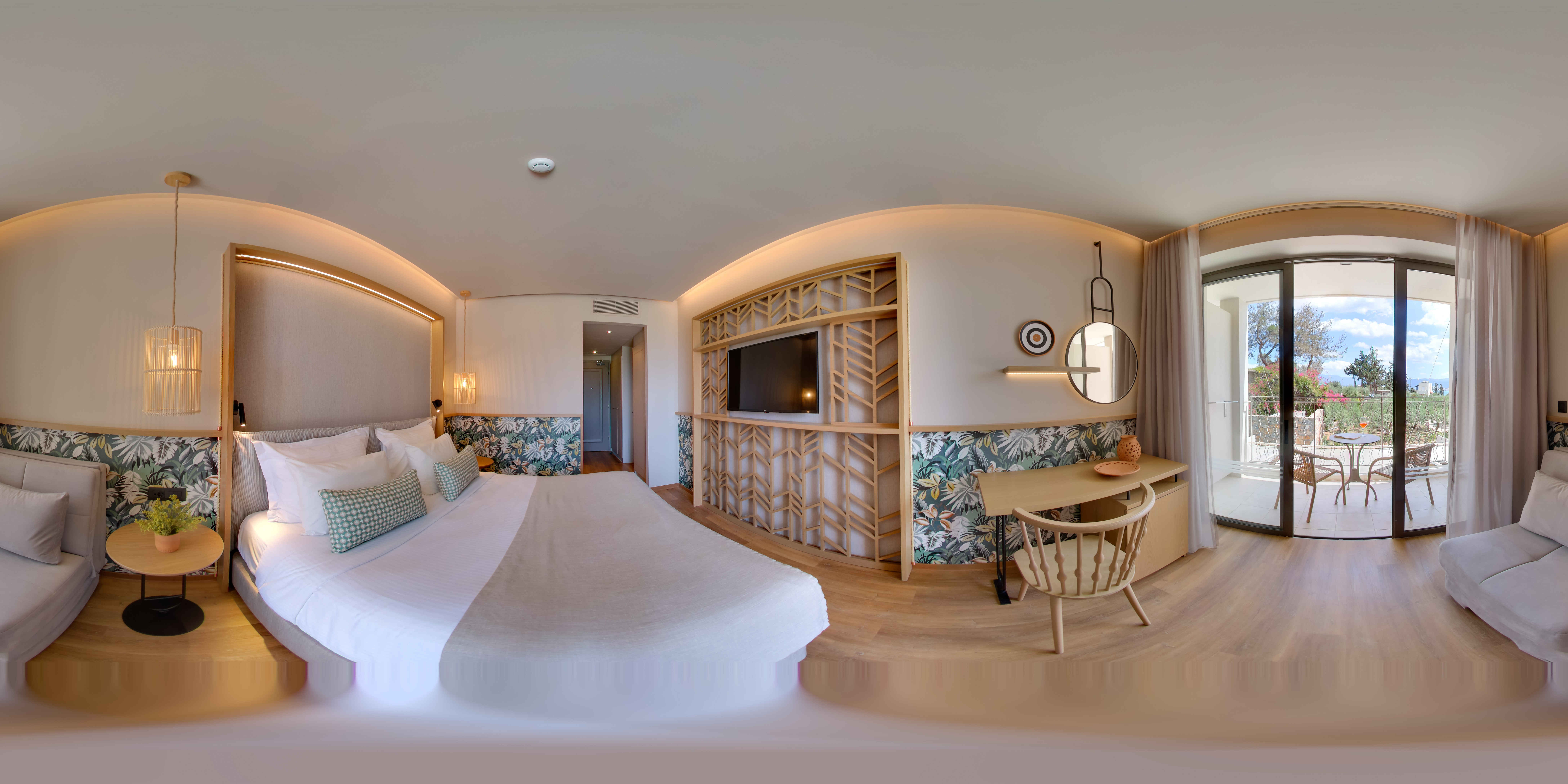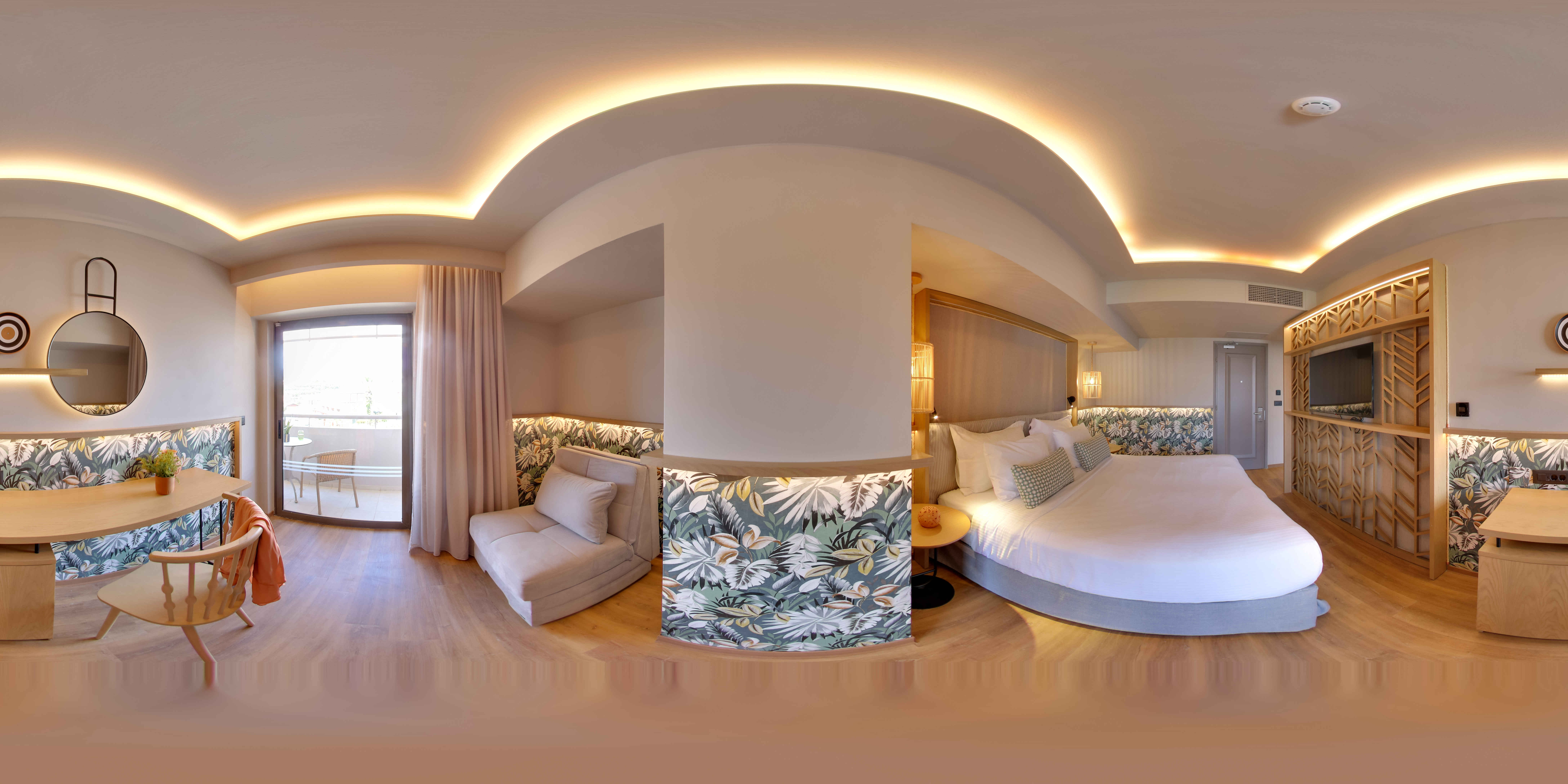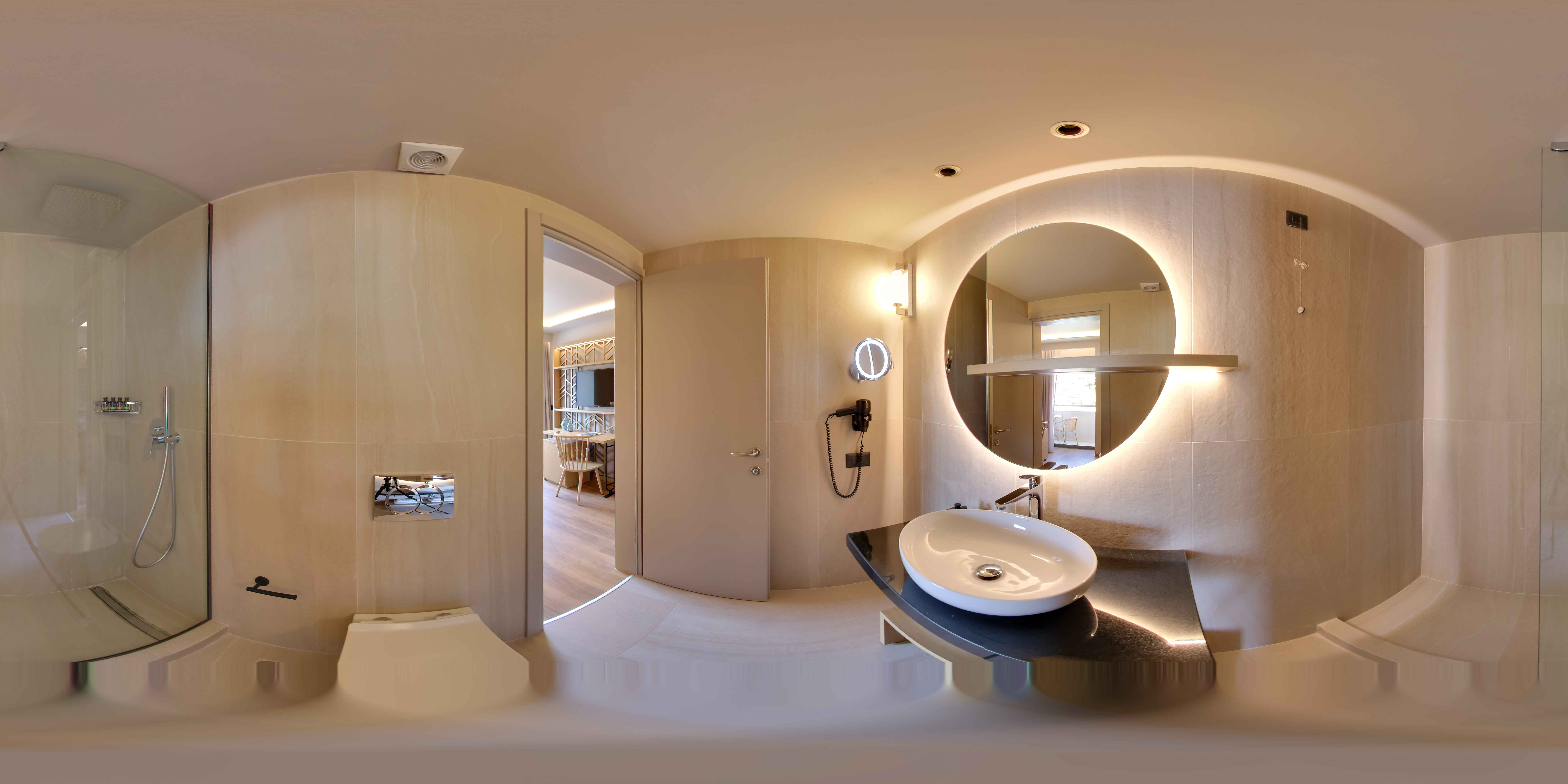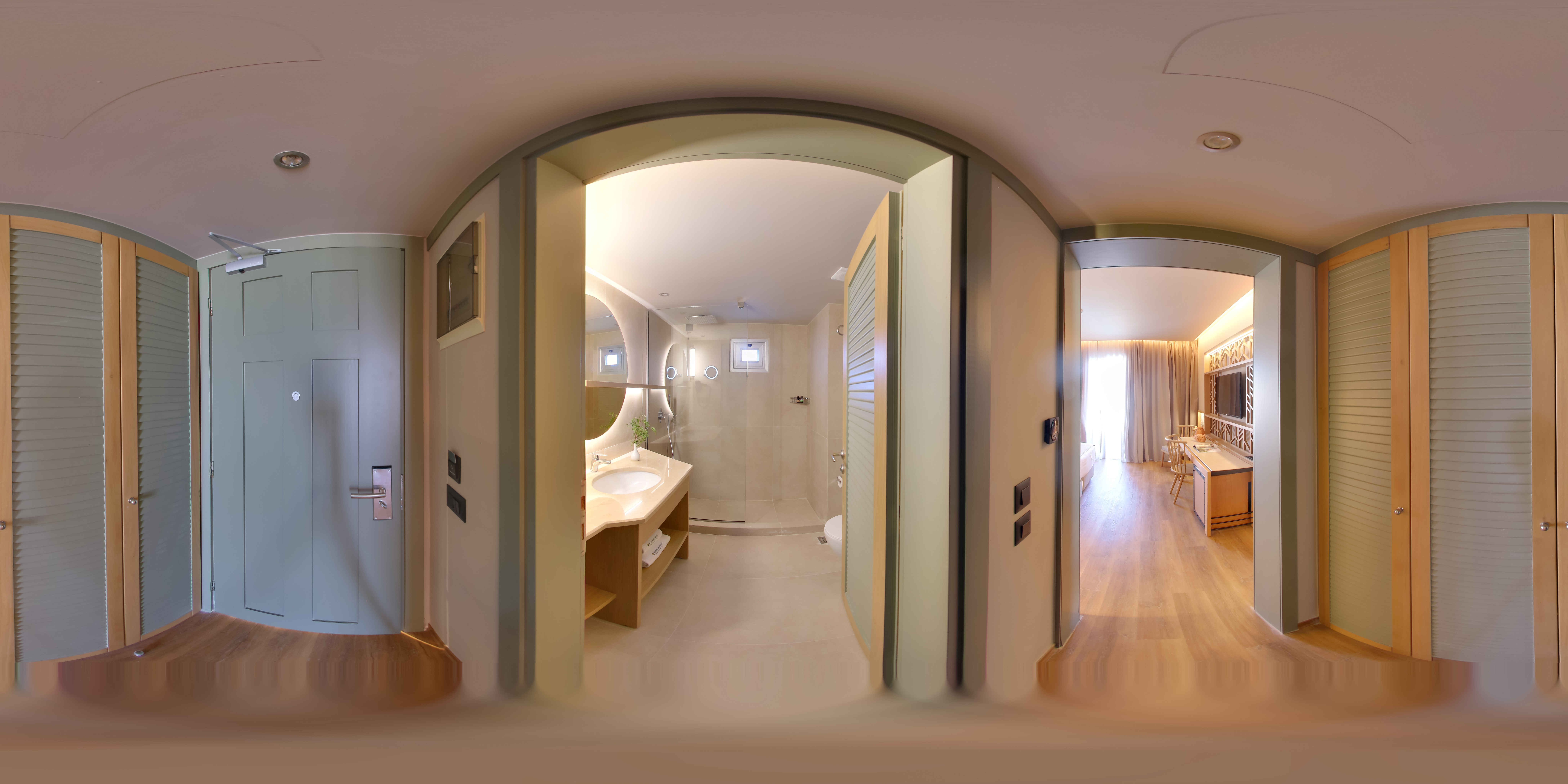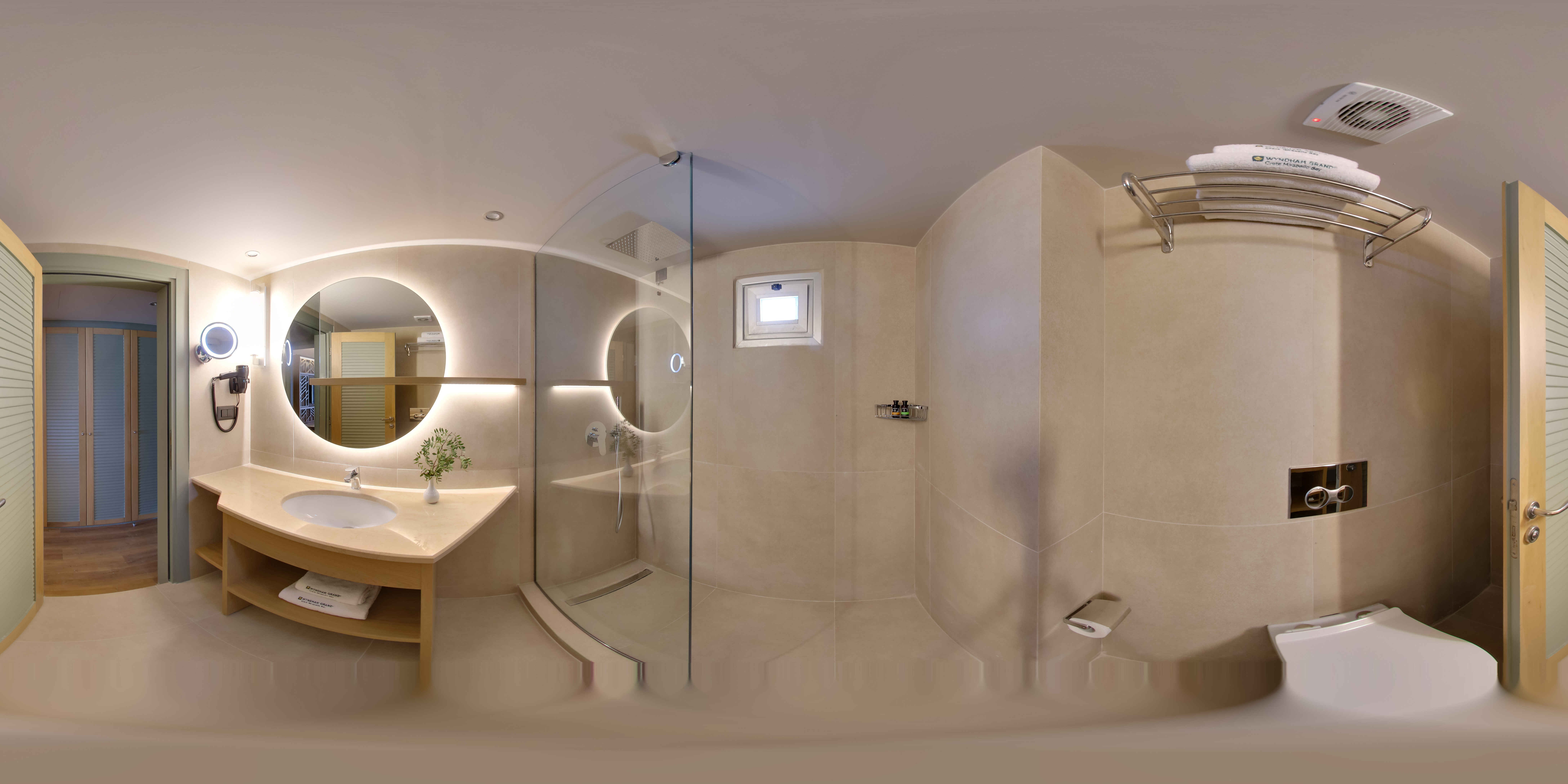 This is the Main Building area. You can use the marker at the elevators to guide yourself to one of the rooms, visit the Amalthea Restaurant or communicate with the hotel’s staff at the Reception.