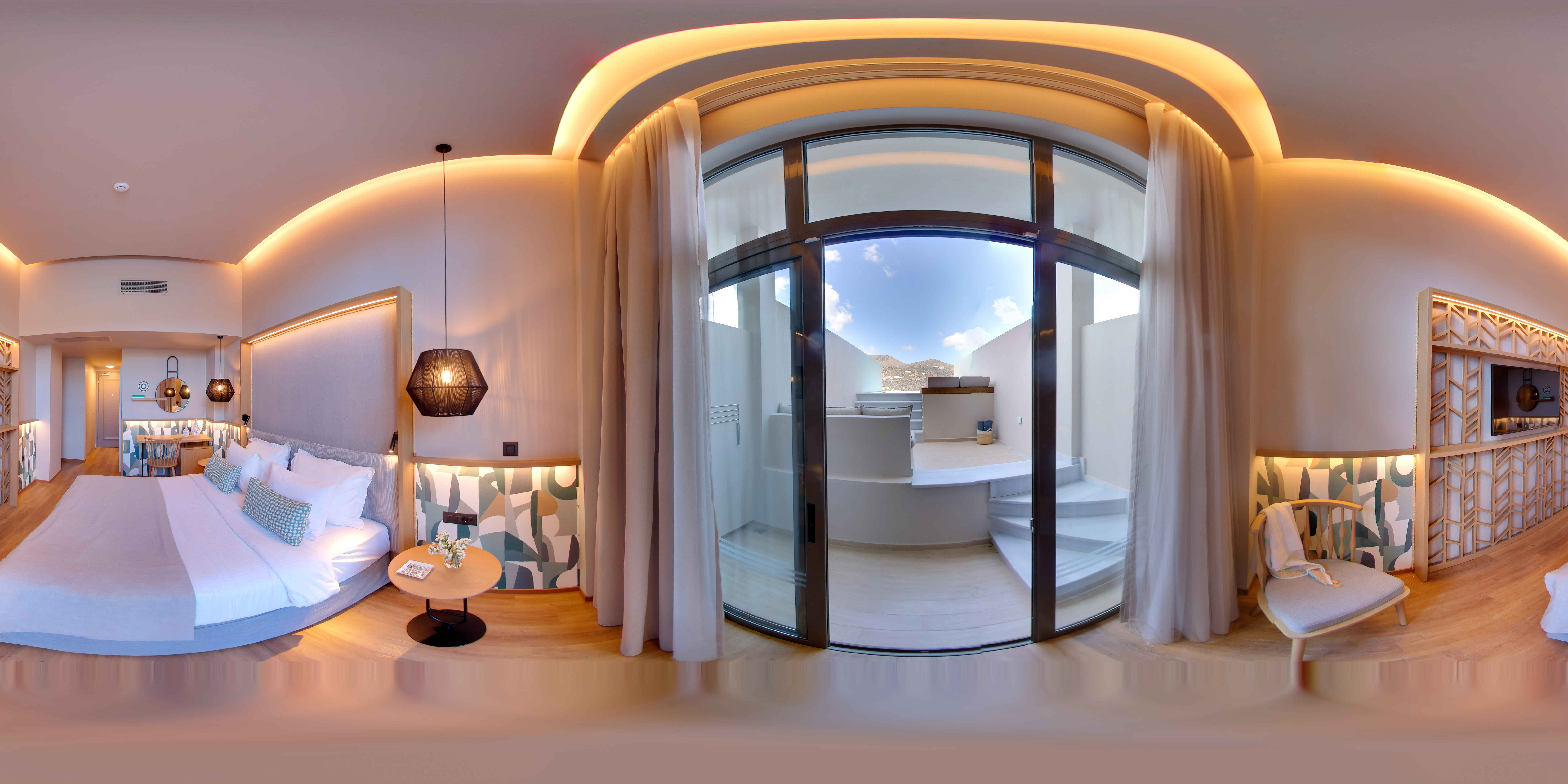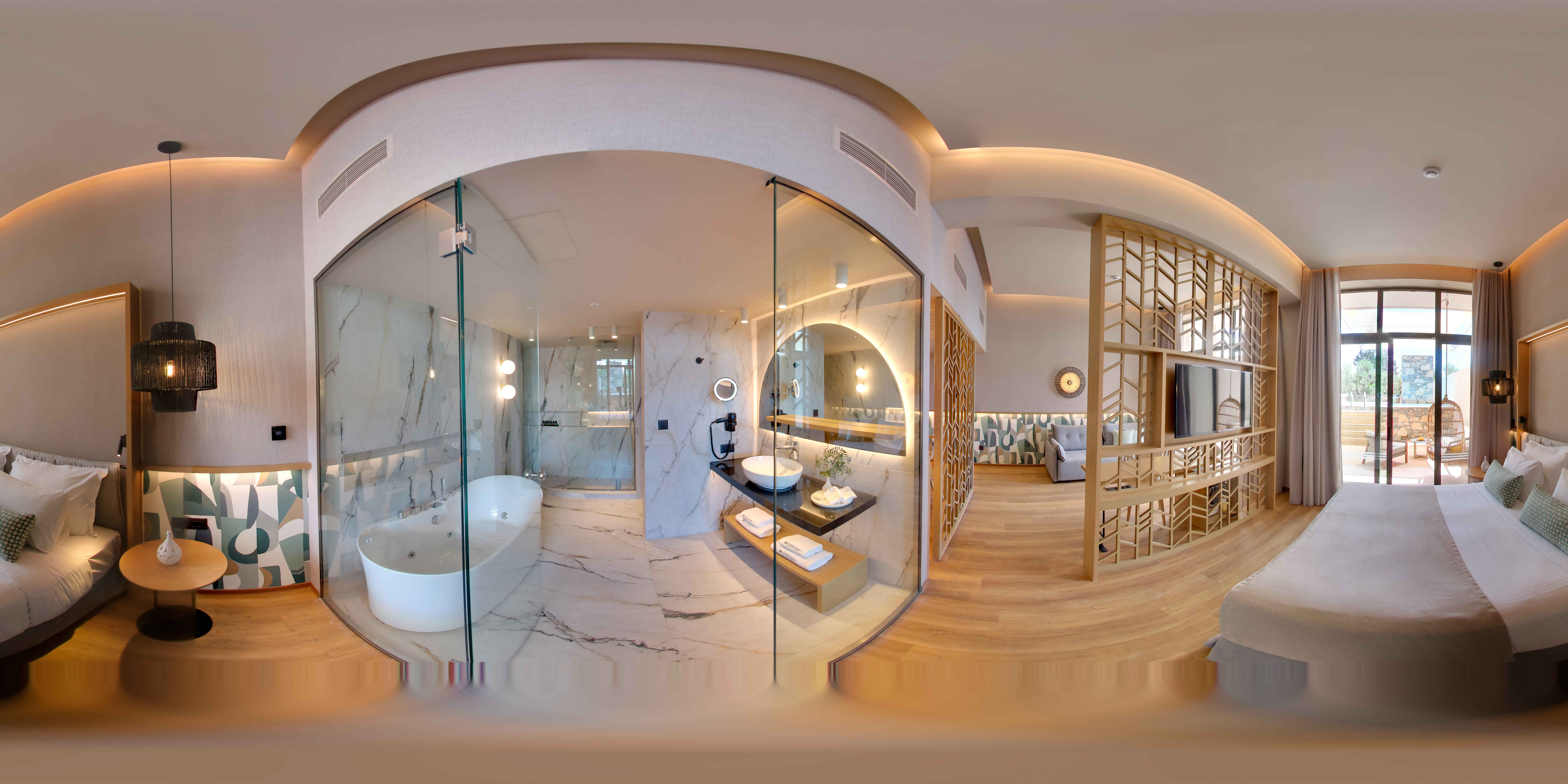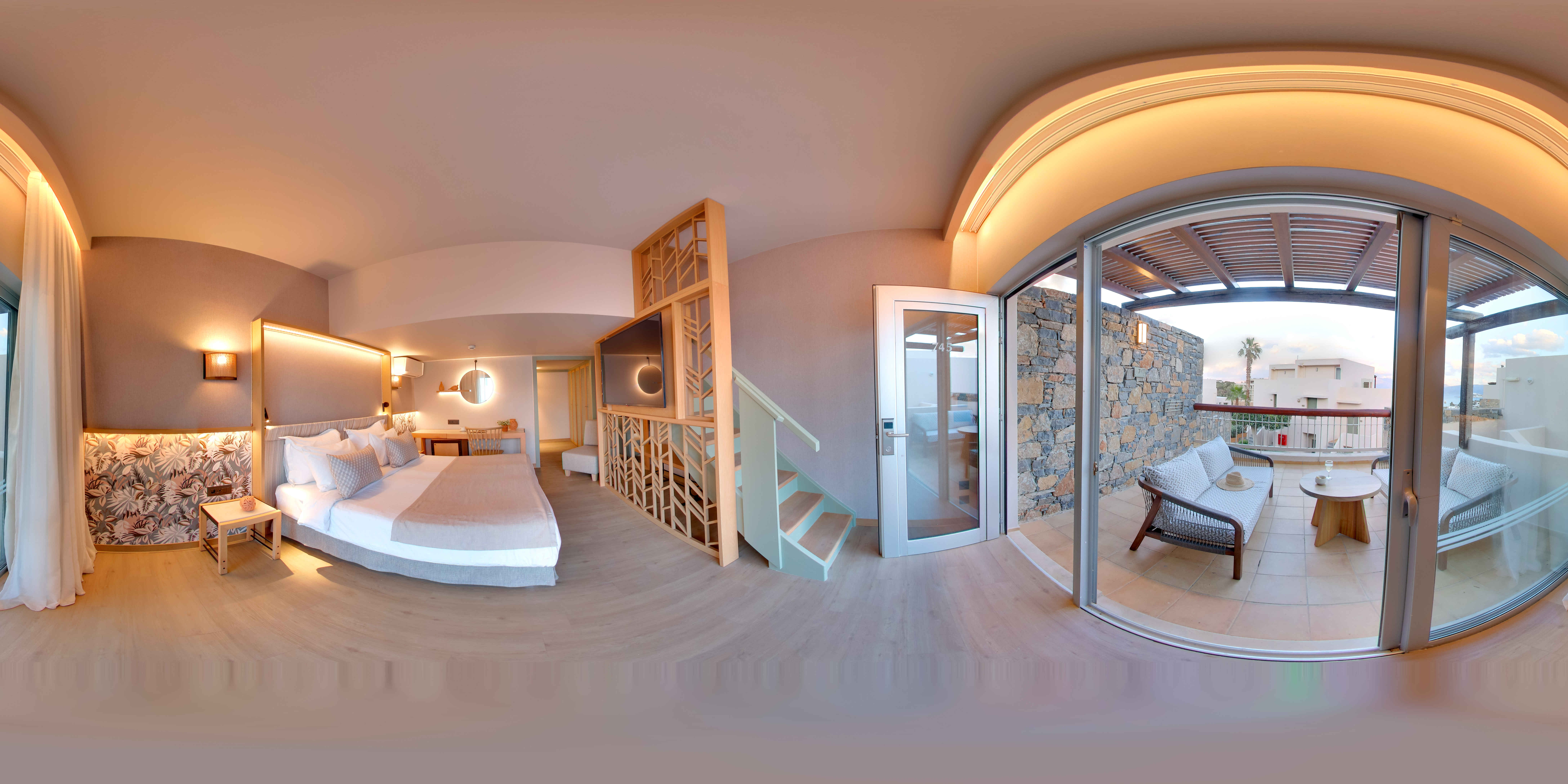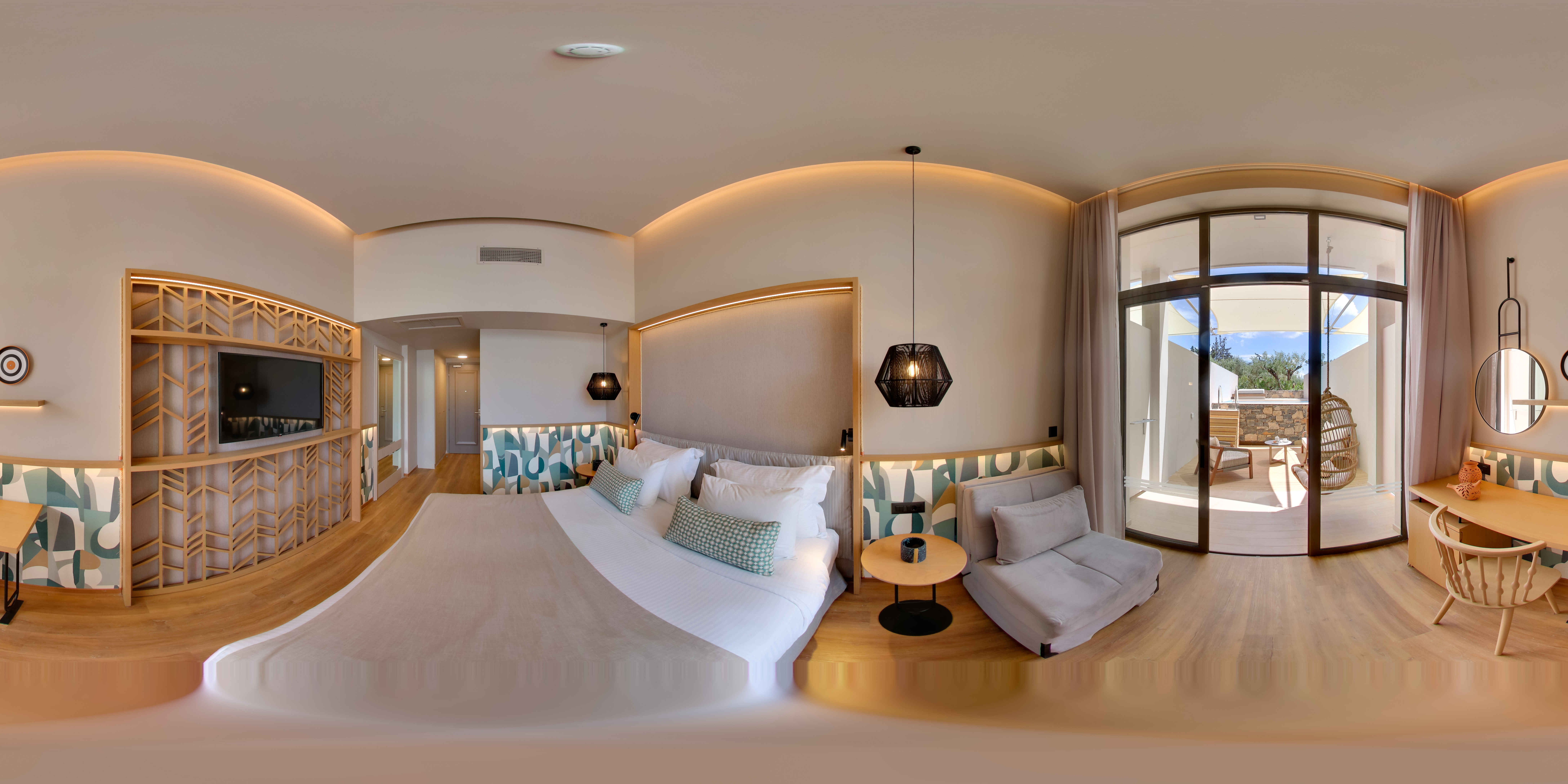 This is the Main Building area. You can use the marker at the elevators to guide yourself to one of the rooms, visit the Amalthea Restaurant or communicate with the hotel’s staff at the Reception.