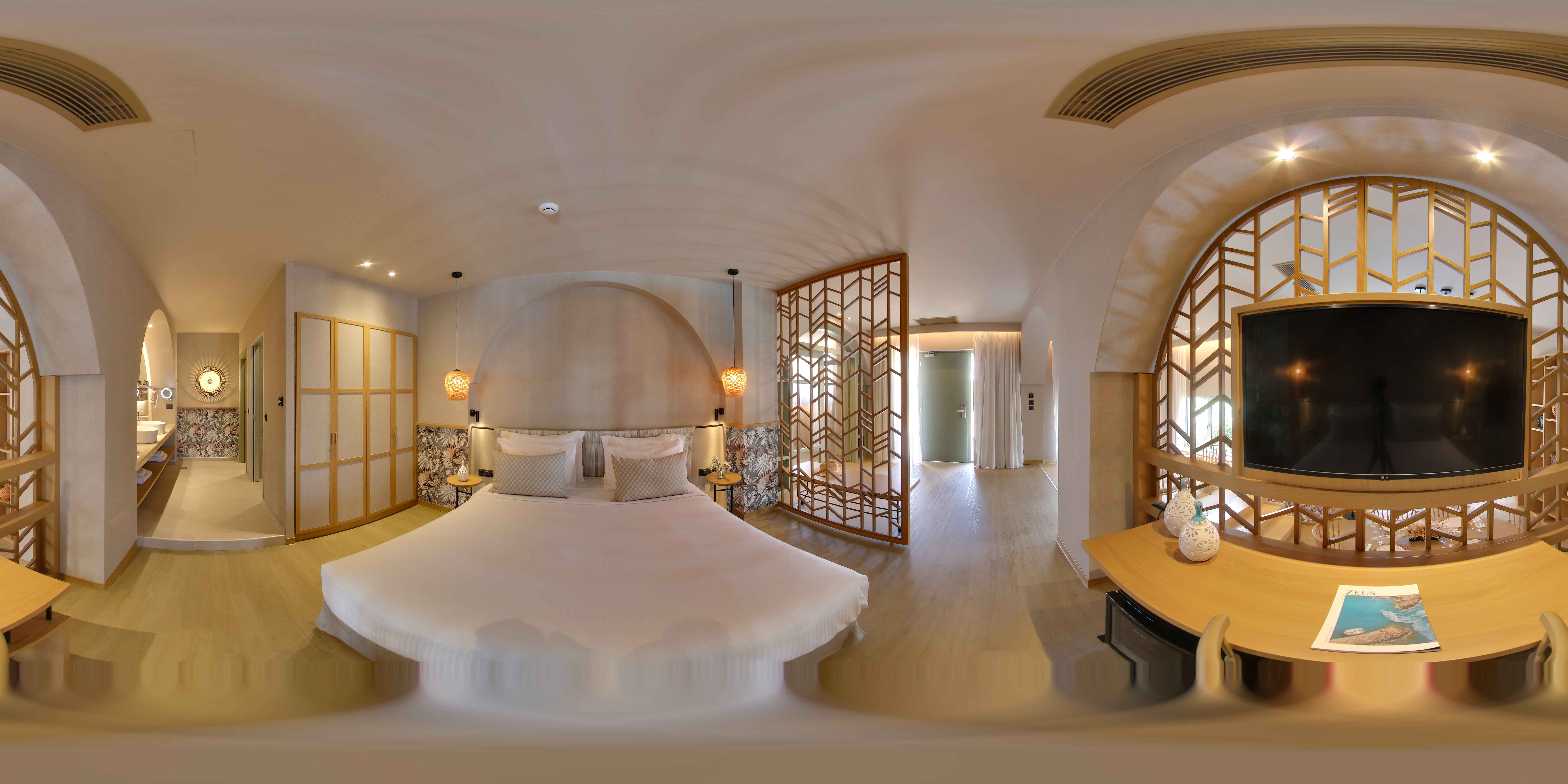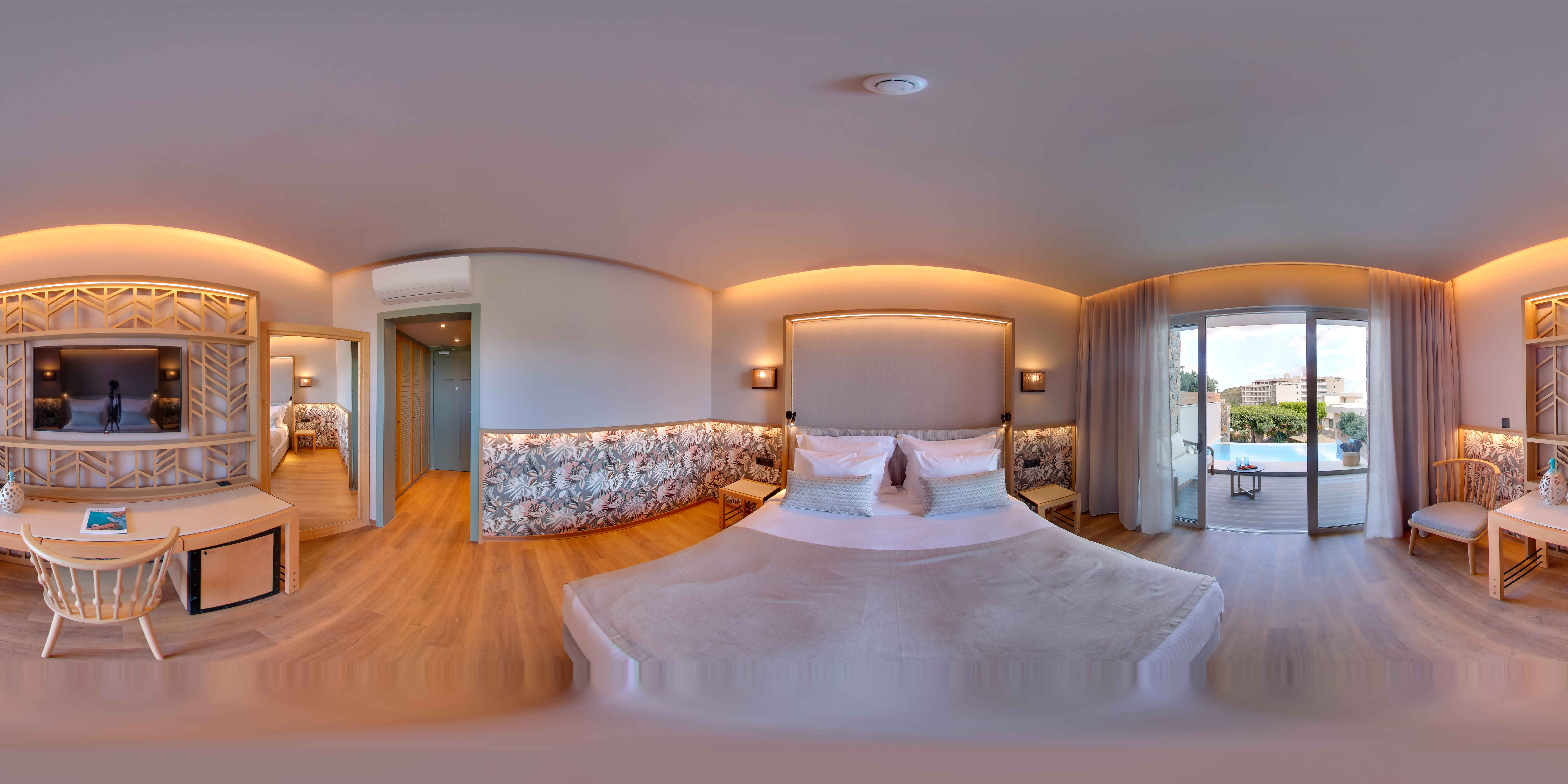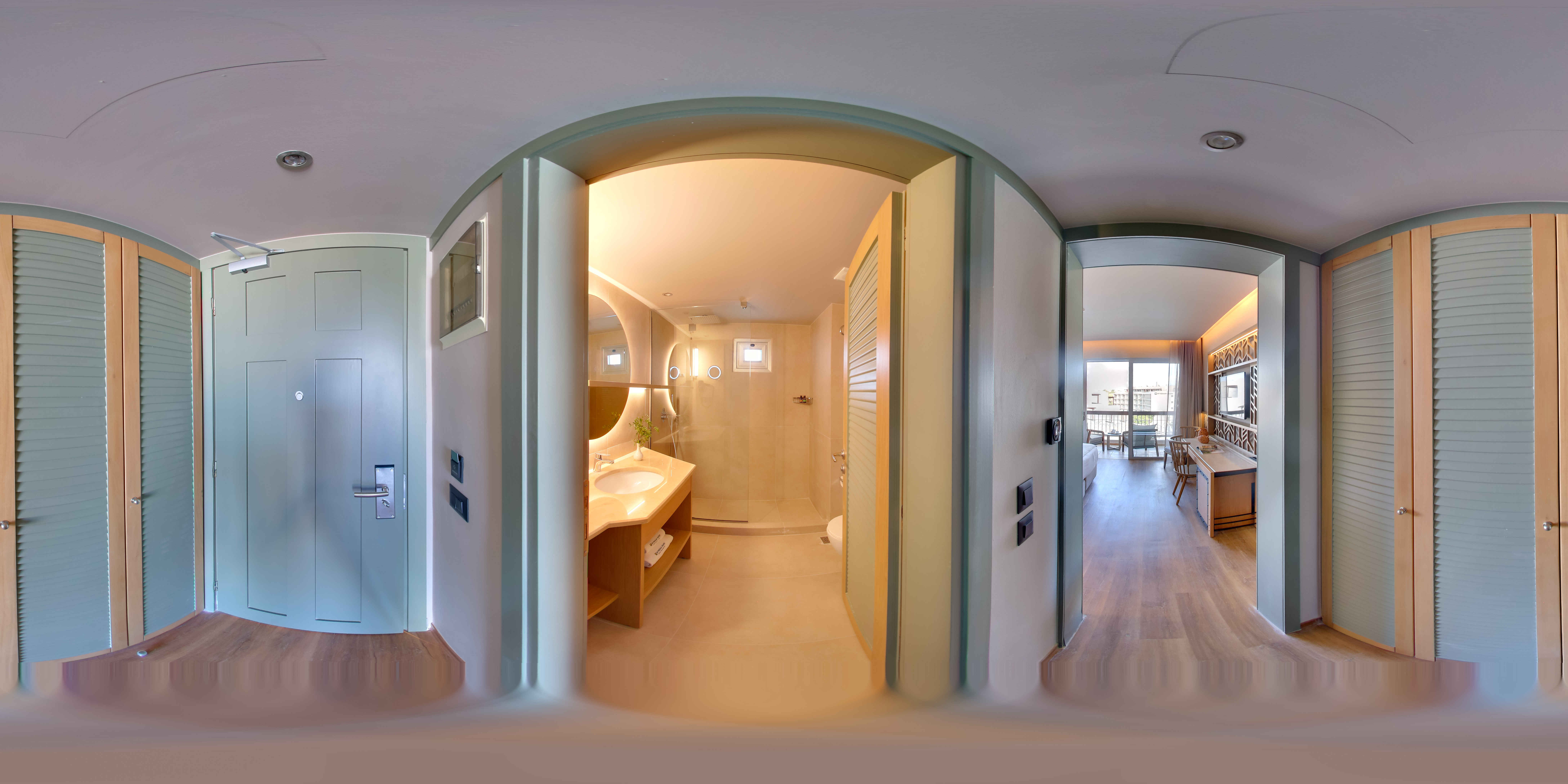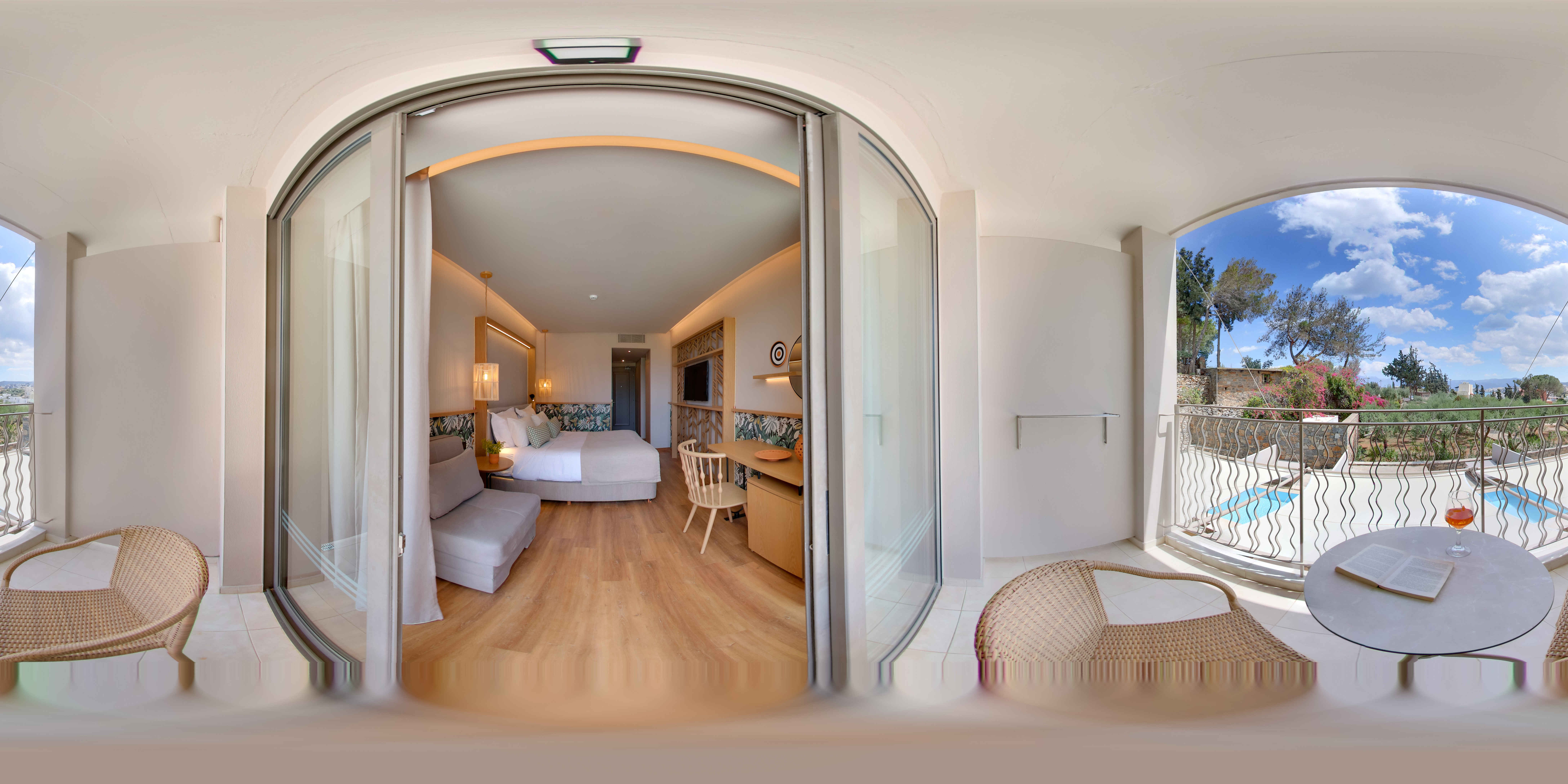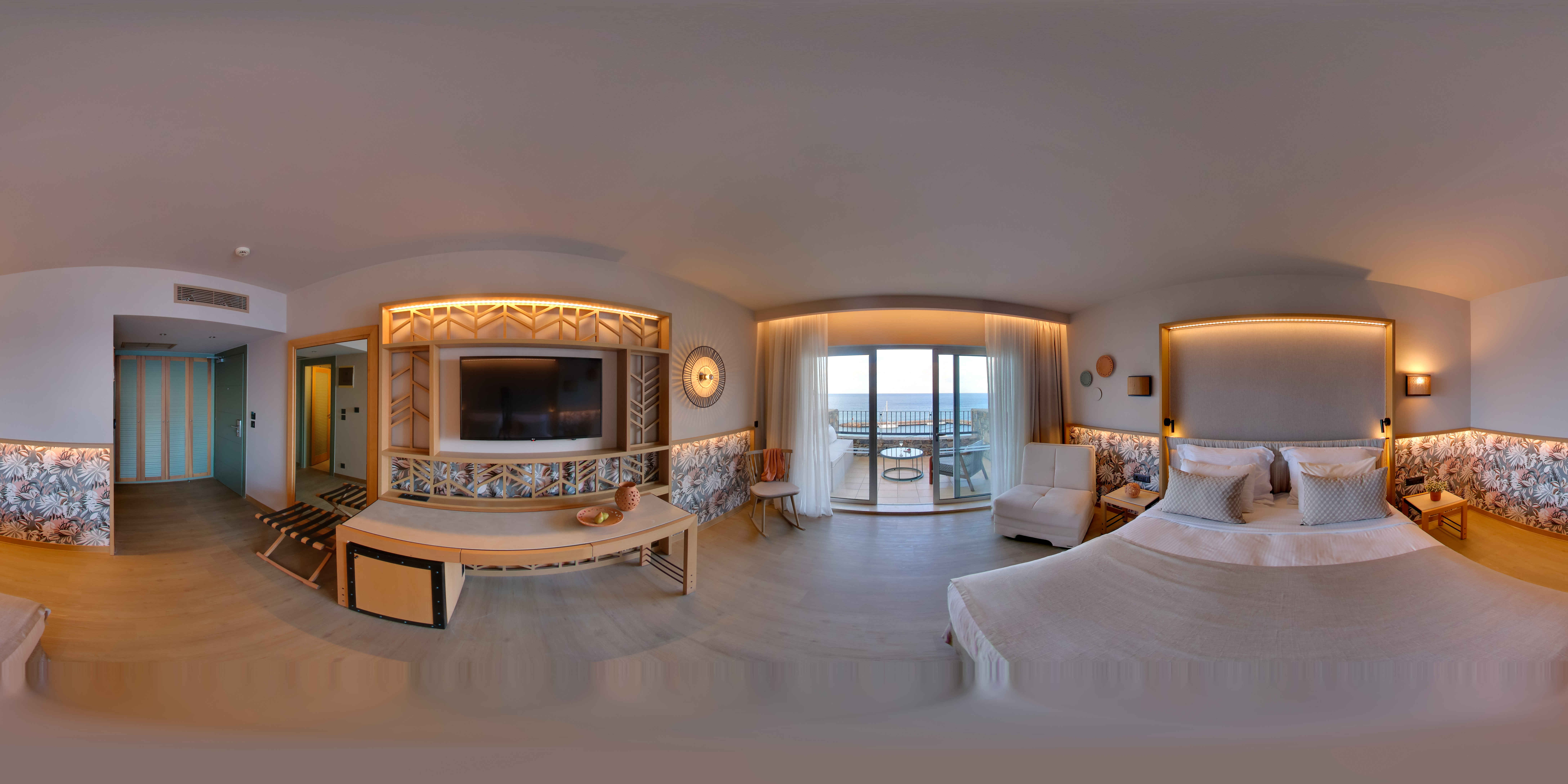 This is the Main Building area. You can use the marker at the elevators to guide yourself to one of the rooms, visit the Amalthea Restaurant or communicate with the hotel’s staff at the Reception.