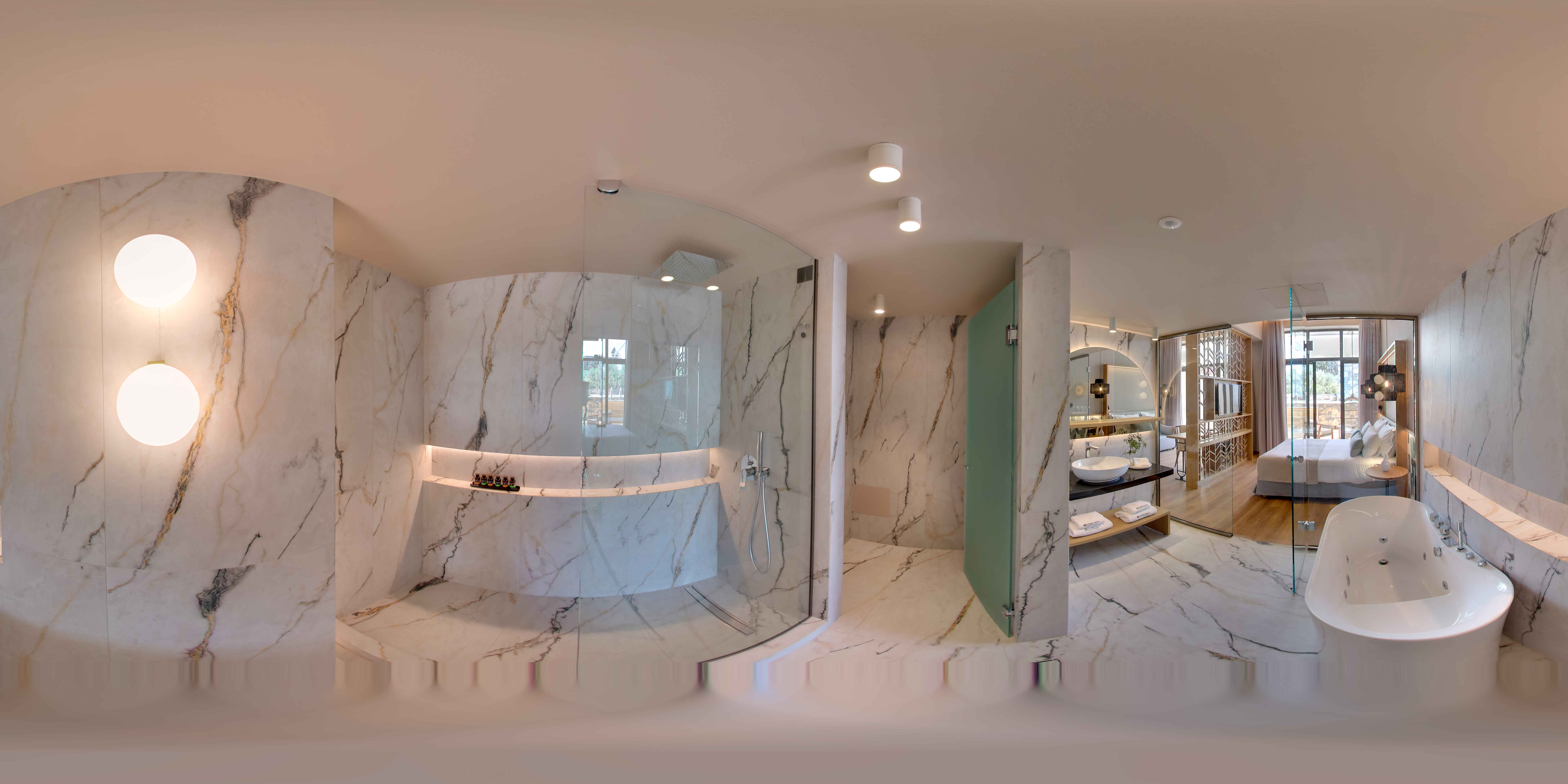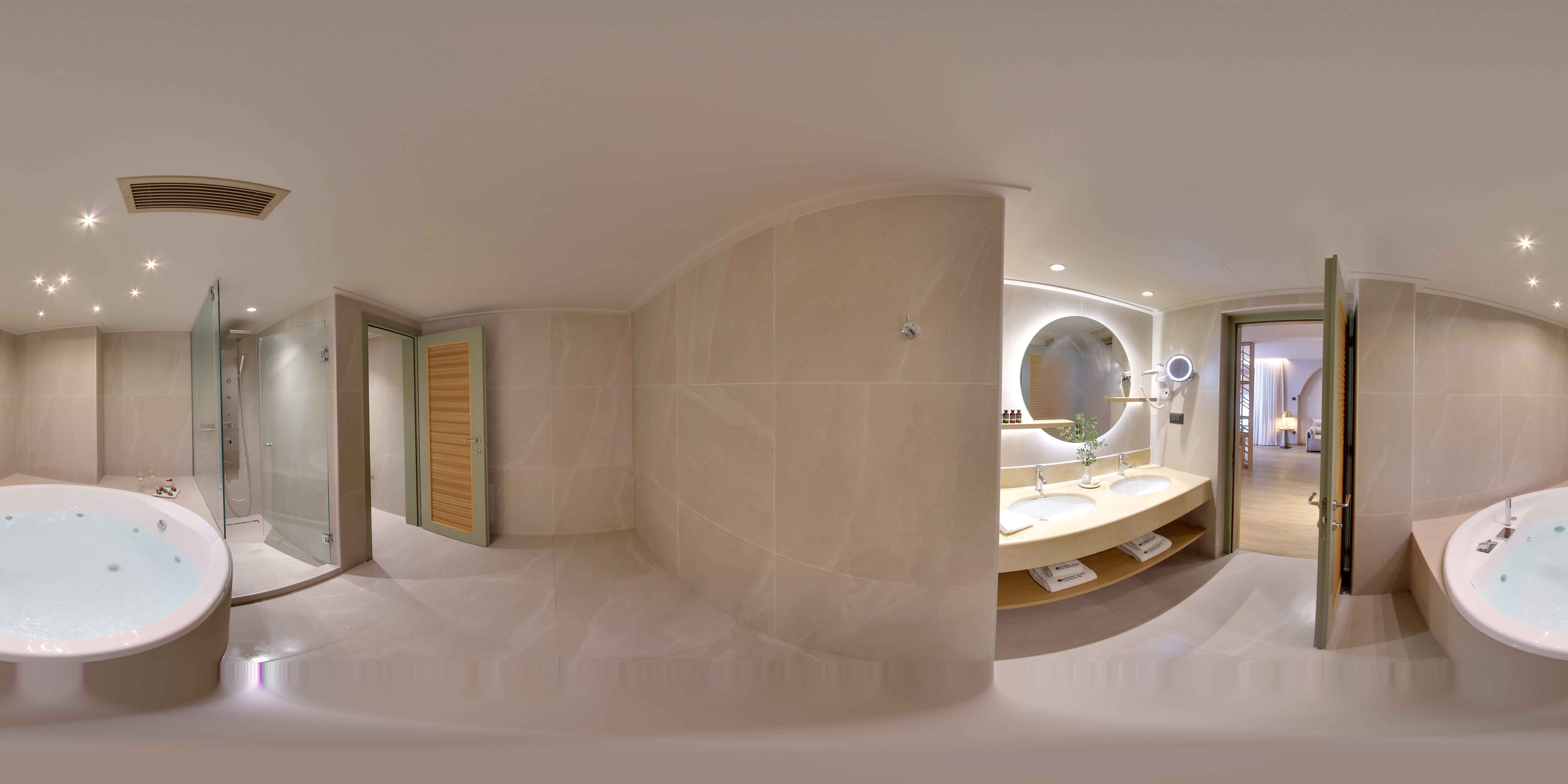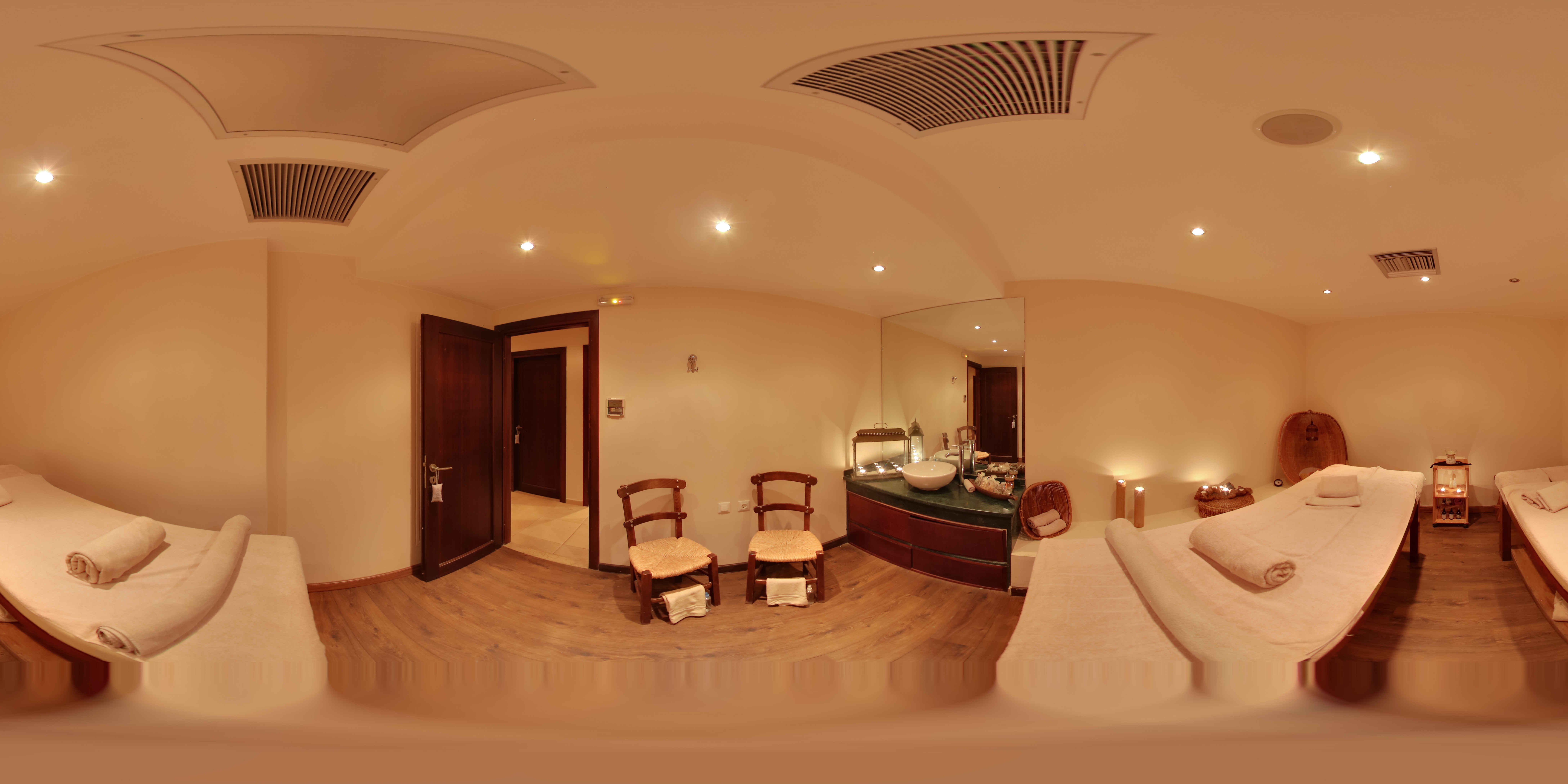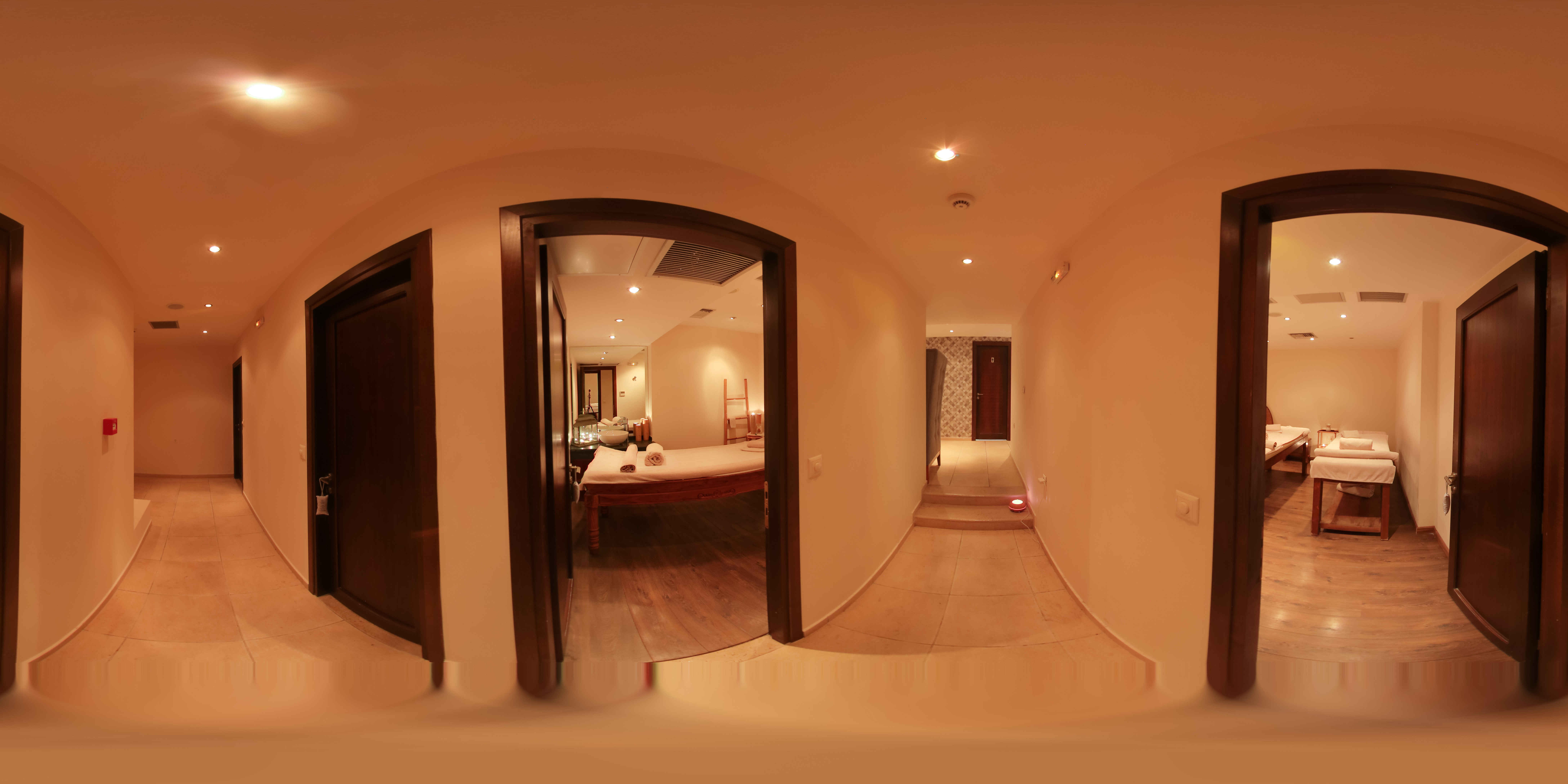 This is the Villas area. You can use the marker in the start area to guide yourself to one of the villas, or you can visit the Spa and Gym facilities.