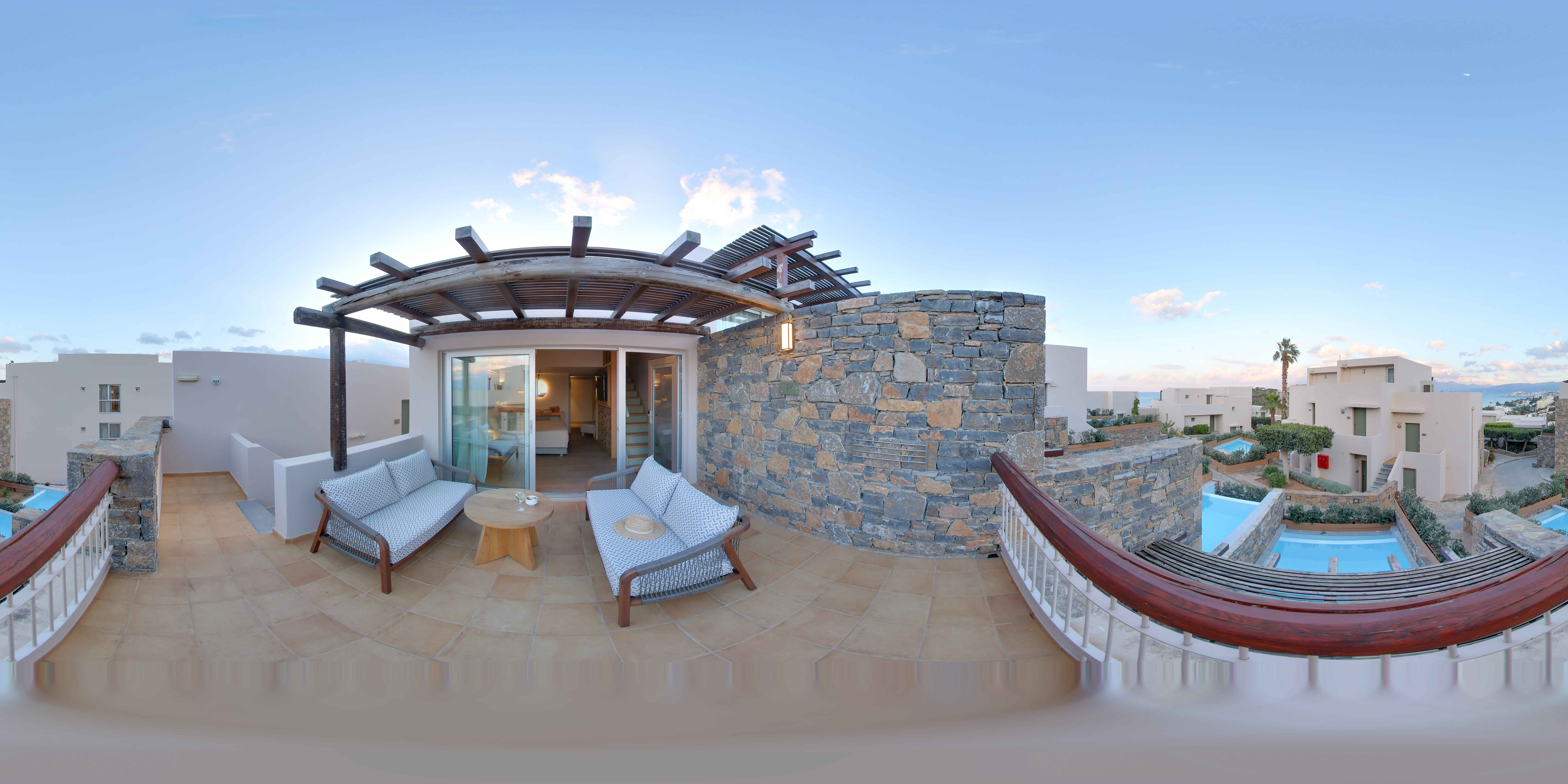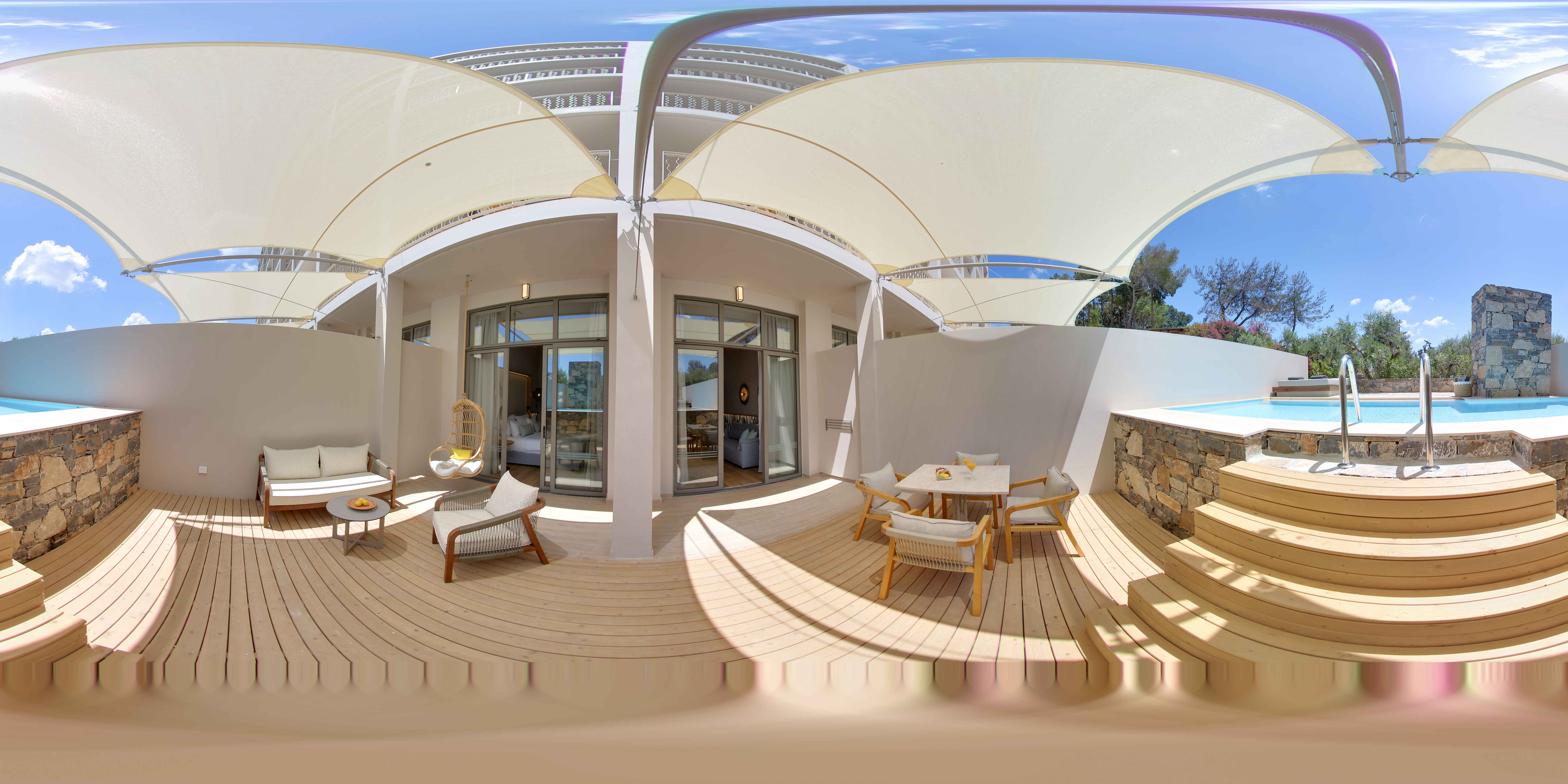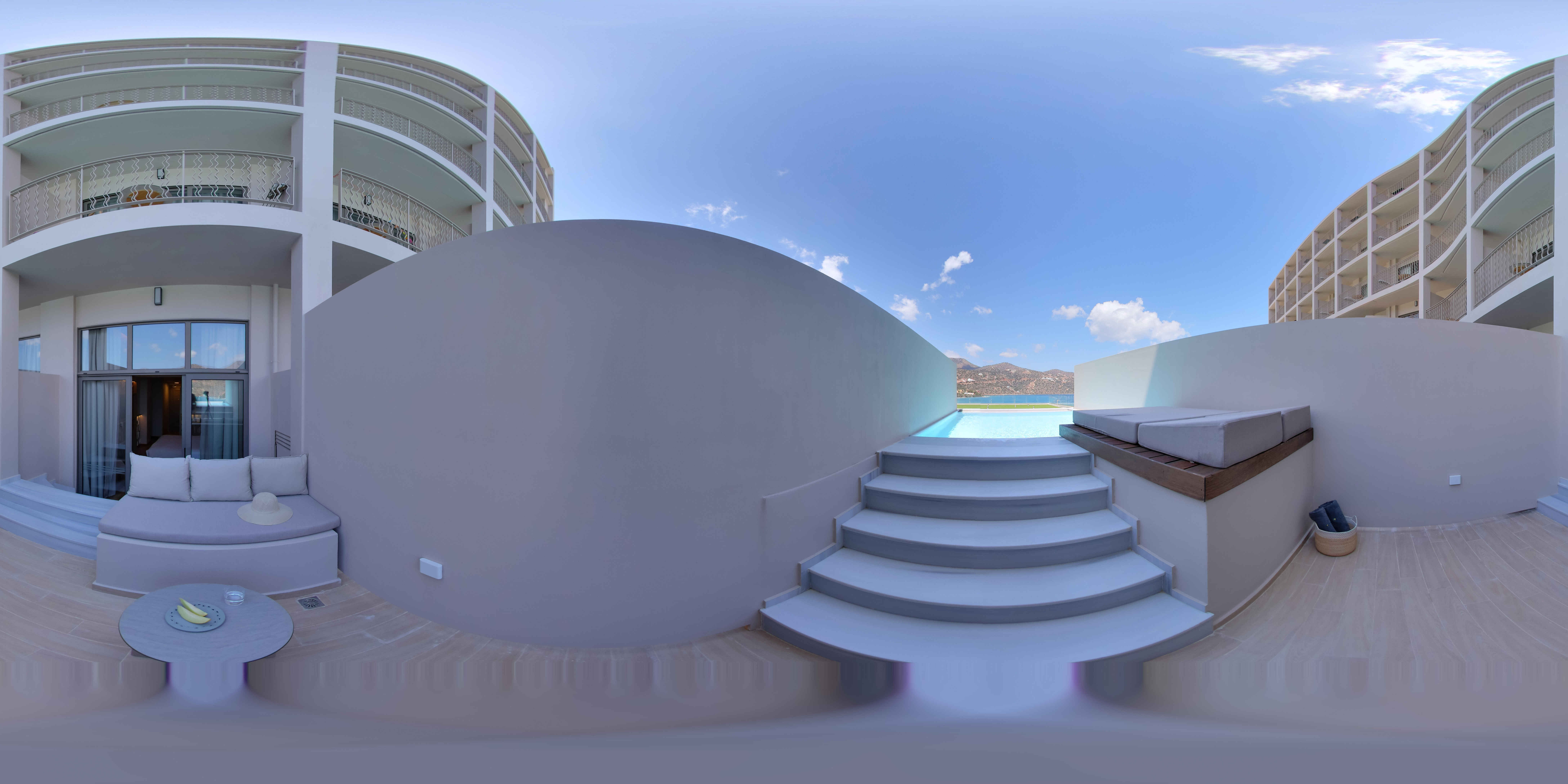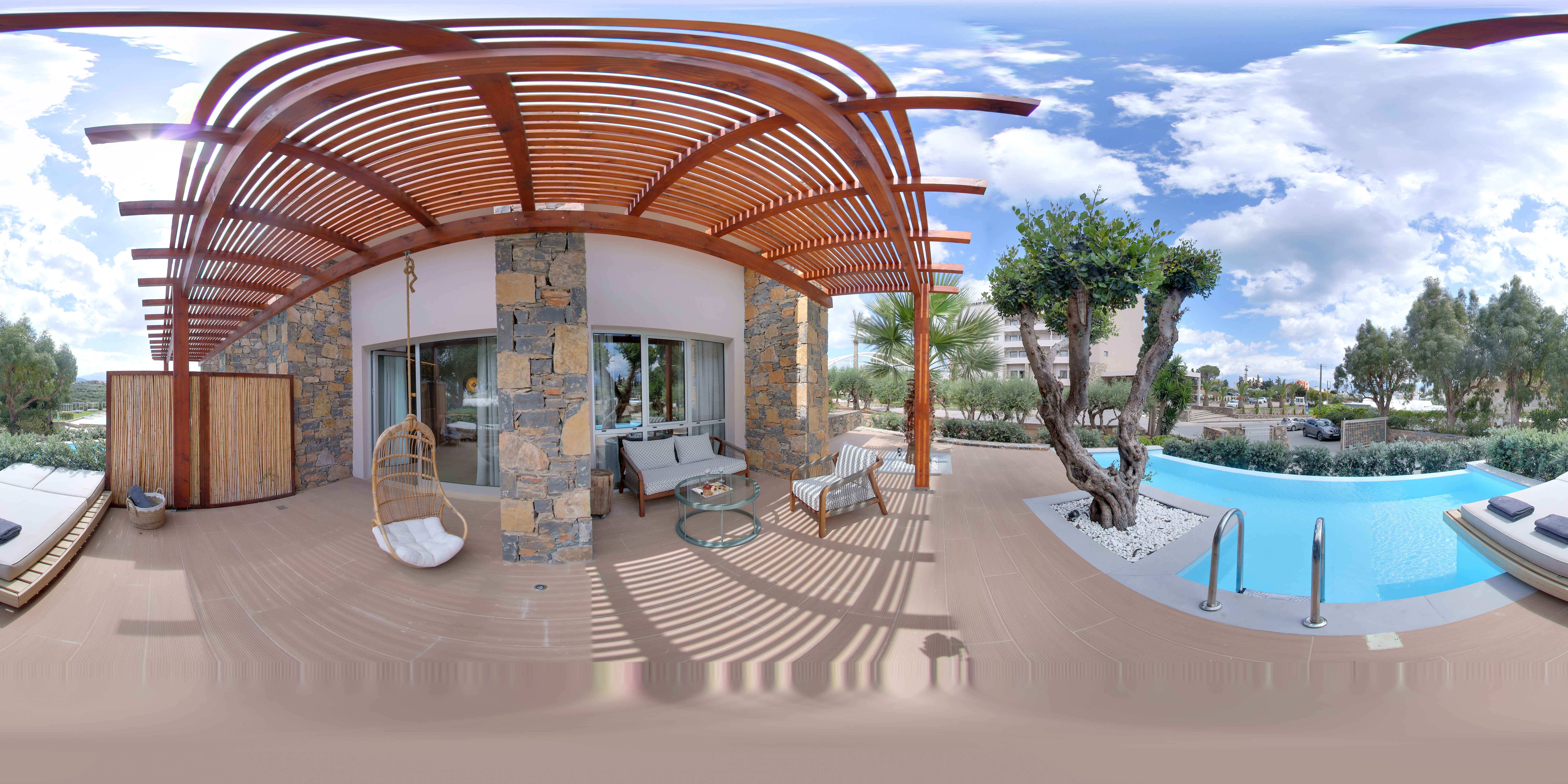 This is the Villas area. You can use the marker in the start area to guide yourself to one of the villas, or you can visit the Spa and Gym facilities.